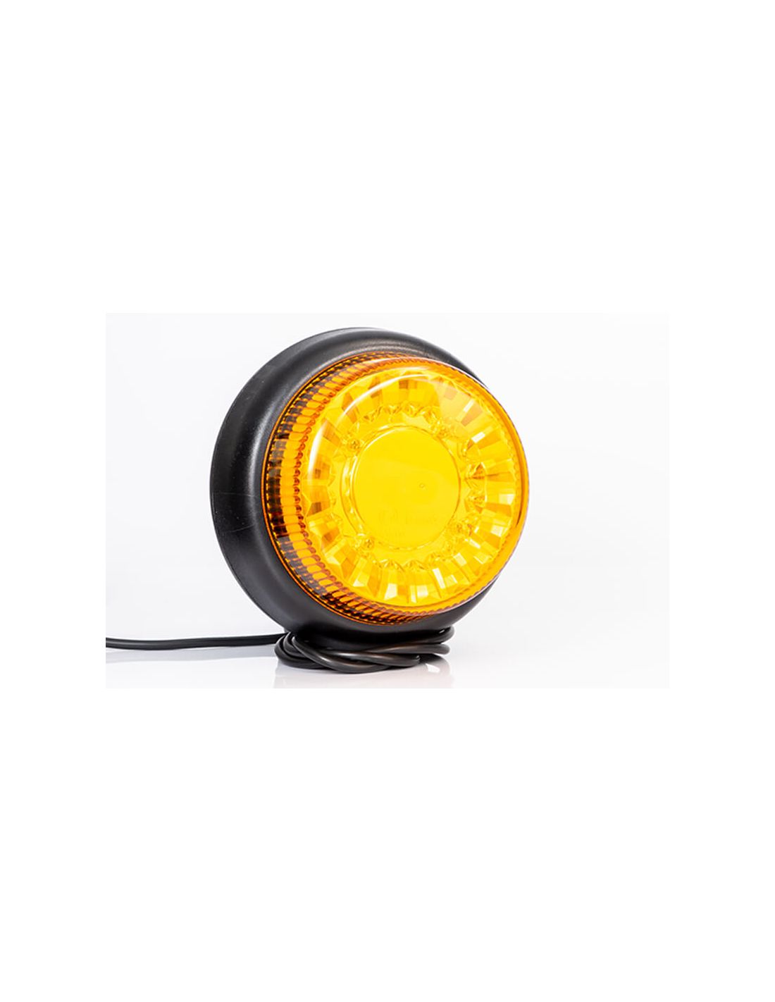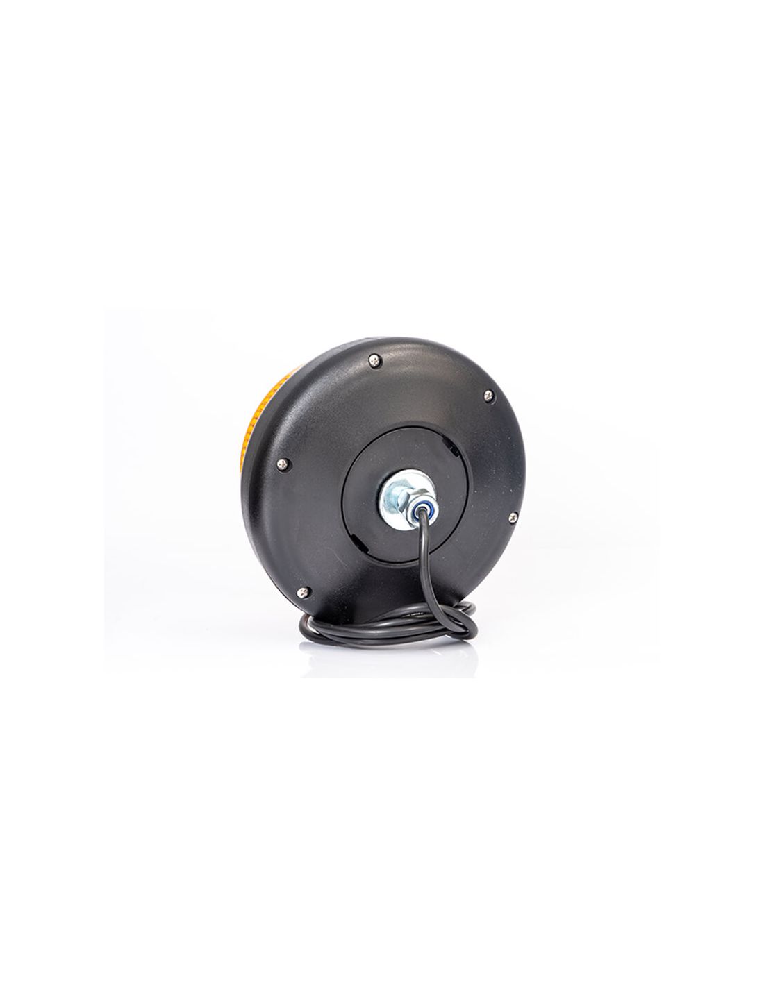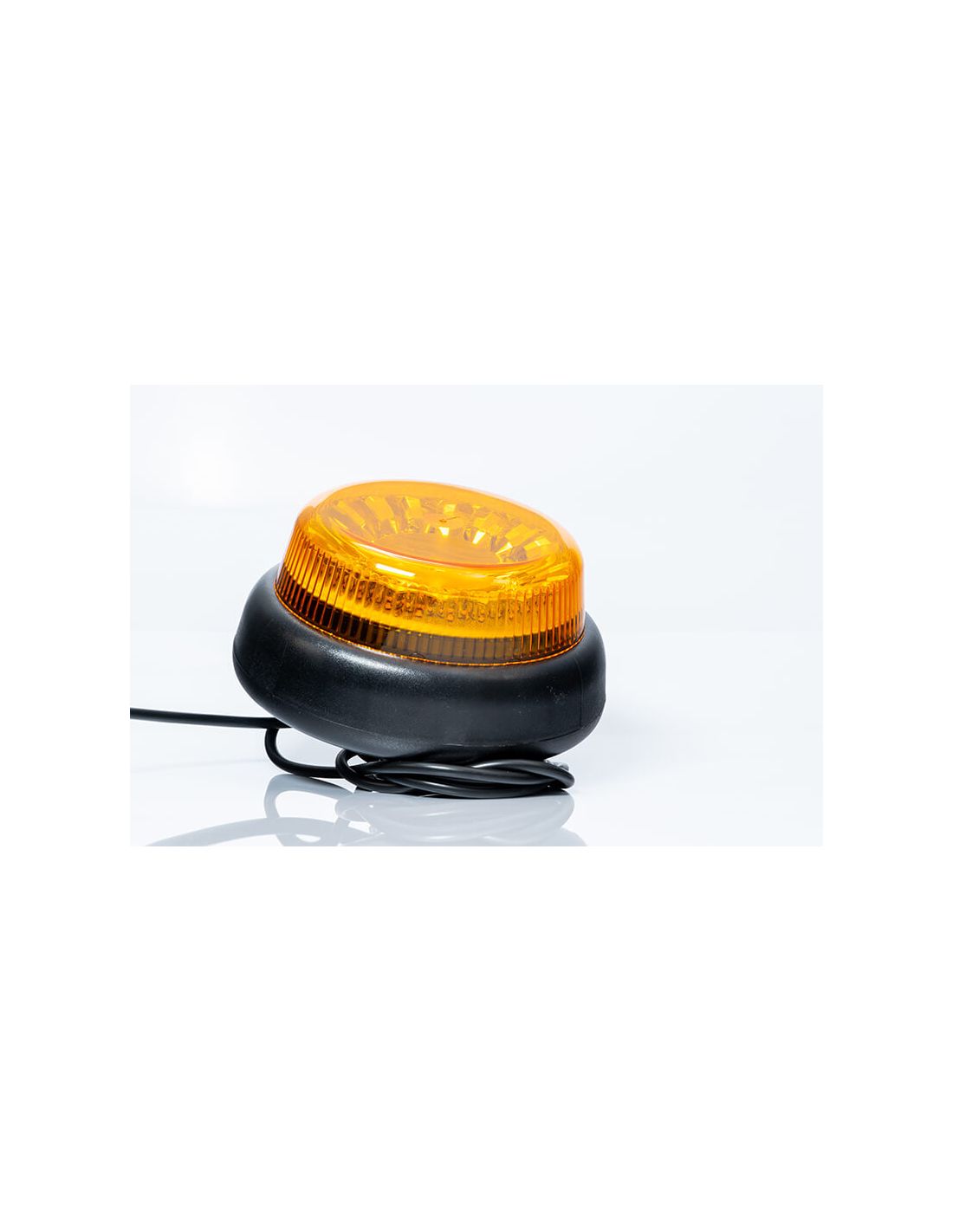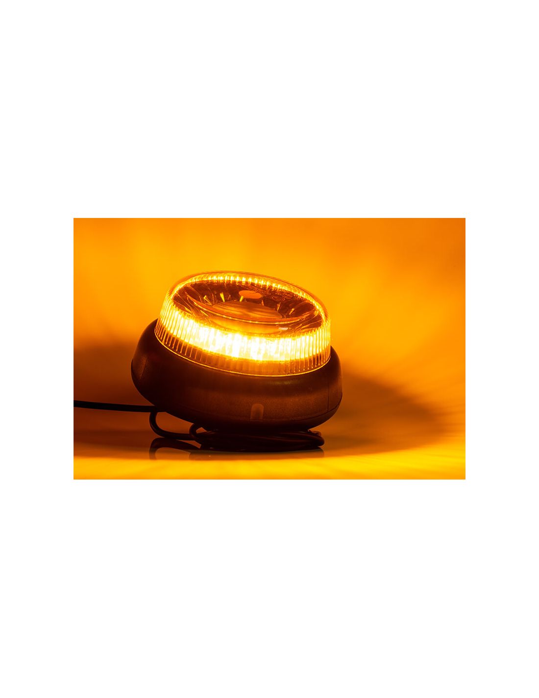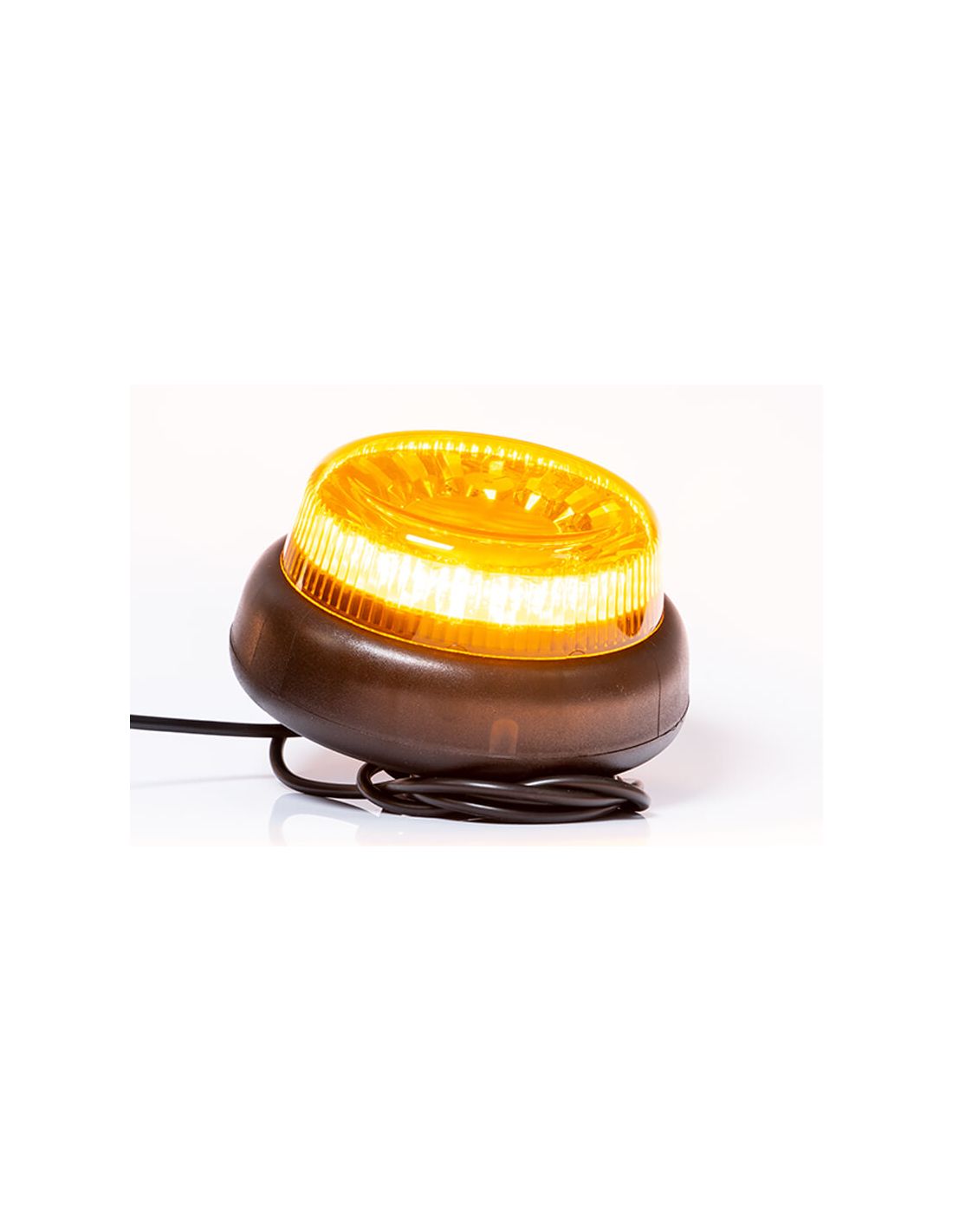 Leistungsstarker LED-Rotator FT101 SC DF, Mehrspannungsfähig, flache Basis zur Befestigung mit 1 Mittelschraube und 1,5 Meter Kabelanschluss von der polnischen Marke Fristom, ein LED-Rotator, der aus 20 hochhellen Chips besteht und sehr stoßfest ist, perfekt für spezielle Transporte oder industrielle oder landwirtschaftliche Maschinen. Sein Verbrauch beträgt 18W bei 12V und 20W bei 24V.
