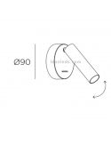 Die Wandleuchte hat einen Tubusschirm von 12Cm Länge und eine Basis, die eine Oberfläche von 9 Cm Durchmesser hat. Ihr Ausrichtungswinkel beträgt 0 bis 90 Grad, und ihr Rotationswinkel beträgt 355º.