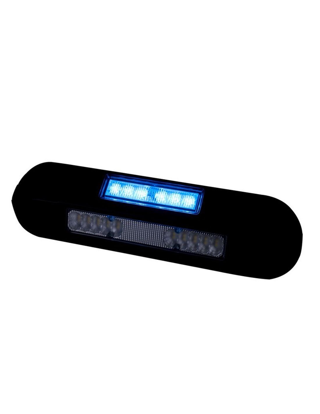 Die LRD 3043/BL/B2 kombiniert LED-Arbeitslicht und stroboskopisches Warnlicht in blau mit zwei Helligkeitsstufen (Tag/Nacht). Sie umfasst 20 weiße LEDs 6500 K zur Beleuchtung des Bereichs und 6 Warn-LEDs. Der Betrieb erfolgt in 12/24 V, mit einem Lichtstrom von 1000 lm und niedrigem Verbrauch.