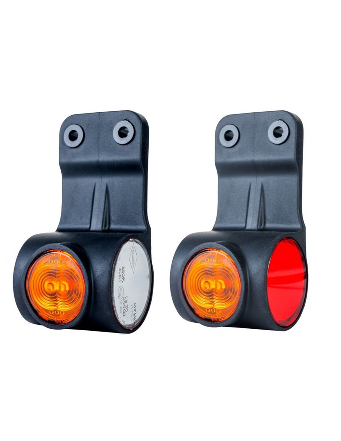 Das Begrenzungslicht LED LD 3109/L (links) und LD 3109/P (rechts) mit 3 Funktionen und flexiblem geraden Träger. Zulassungen A, SM1 und R1, Schutz IP68 und Betrieb 12/24V. Geeignet für Anhänger, Lkw und Sattelanhänger.