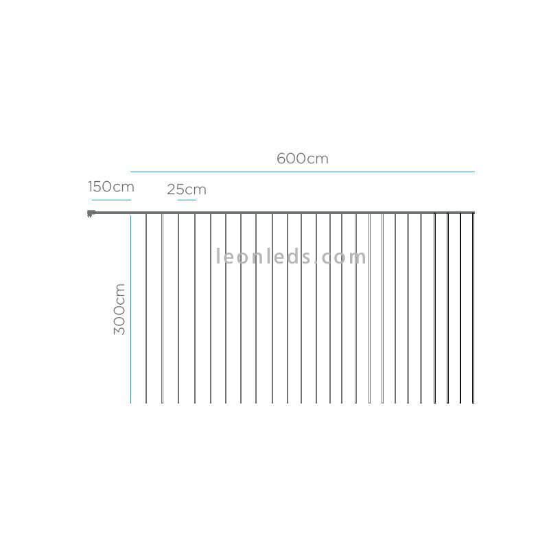 Der Lichtervorhang Luceo 6x3 besteht aus einer Struktur von vertikalen Girlanden mit transparentem Kabel und 720 LEDs mit einem warmen Lichtton von 3000k, ideal, um Persönlichkeit und Licht in die dunkelsten Ecken deines Zuhauses zu bringen oder zur Außendekoration von Bars oder Freizeiteinrichtungen beizutragen. Dank der großen Größe von 600x300cm ist es die perfekte Wahl, um große Wände von Wohnungen oder Gebäuden zu beleuchten.