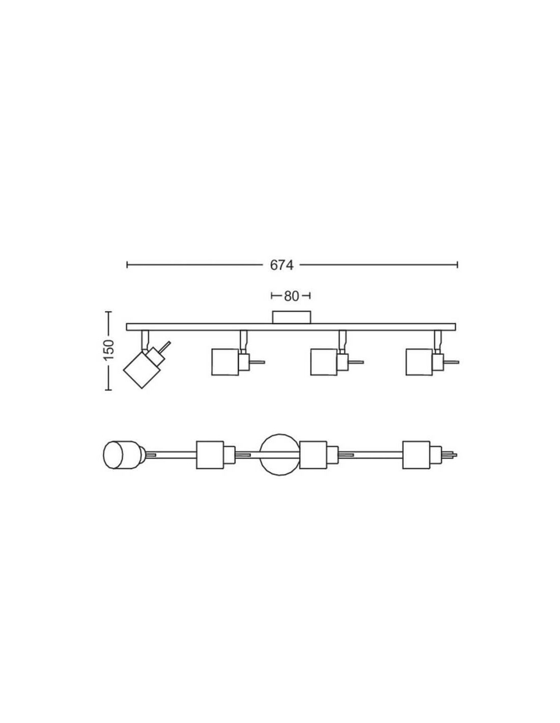 Die 4-flammige Meranti Lampe von Philips hat eine IP20-Zertifizierung zum Schutz vor festen Objekten über 12 mm, um langlebig zu sein. Sie wird mit 4 LED GU10 Glühbirnen mit maximal 35W betrieben, die nicht im Lieferumfang enthalten sind. Mit dem Kauf dieses Produkts erhalten Sie 2 Jahre Garantie.