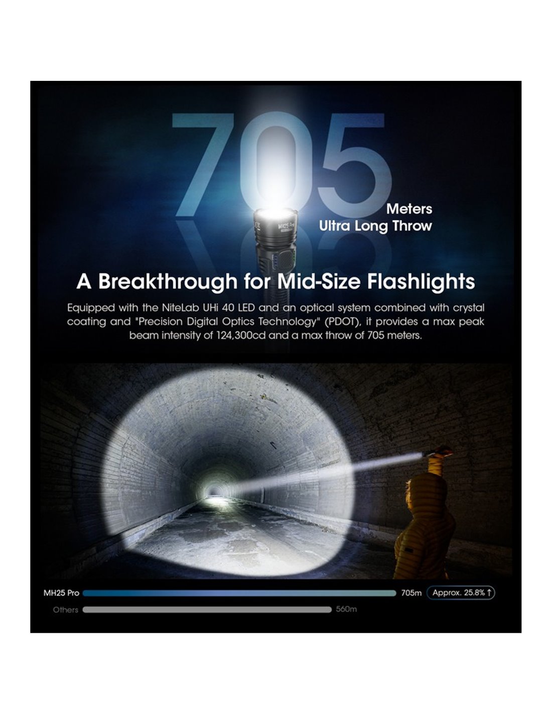 Linterna NITECORE MH25PRO: 3.300 Lumen Leistung und 705 Meter Reichweite