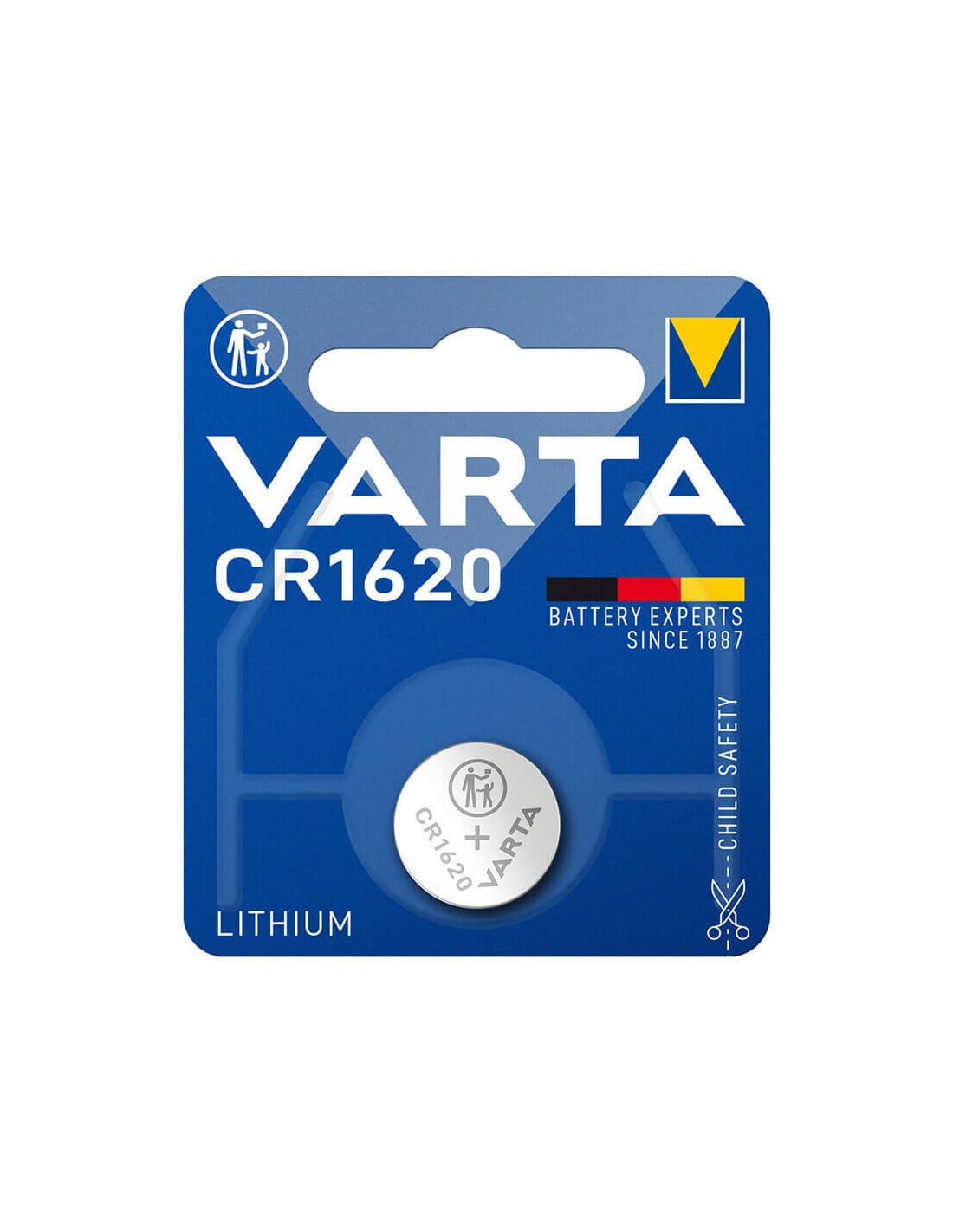 Lithium-Batterie CR1620 von Varta Lithium, Knopfmodell mit einer Spannung von 3V. Premium-Reihe, die für mehr als 10 Jahre gelagert werden kann. Wird in Autoschlüsseln, Taschenrechnern, Kameras und anderen Geräten verwendet, die diese CR1620-Batterie benötigen.