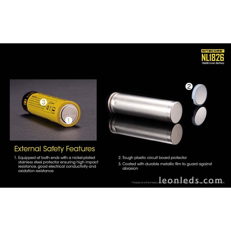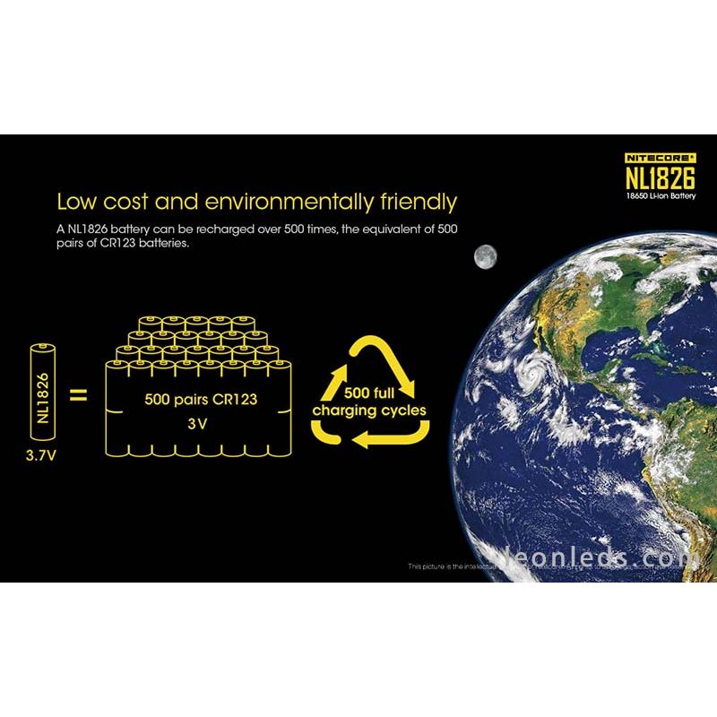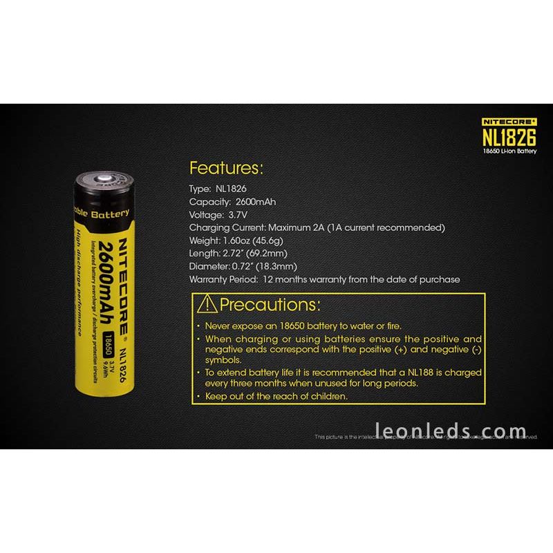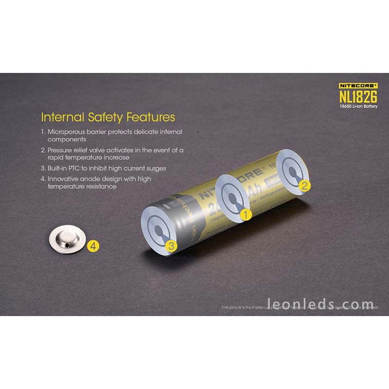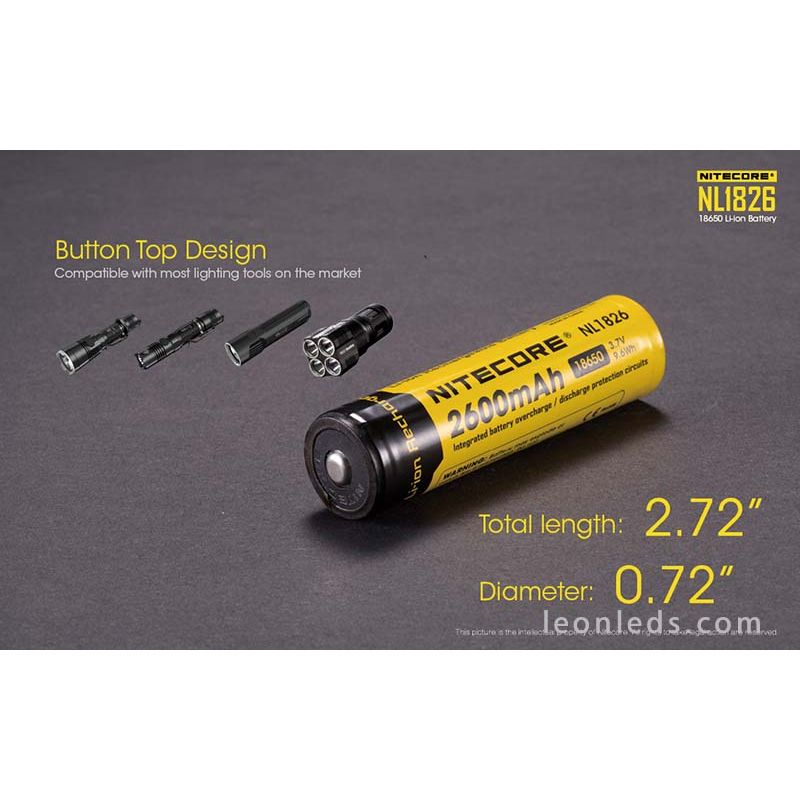 Lithium Li-ion Batterie von Nitecore im 18650 Format mit einer Kapazität von 2600mAh und 3.7v Modell NL1826.