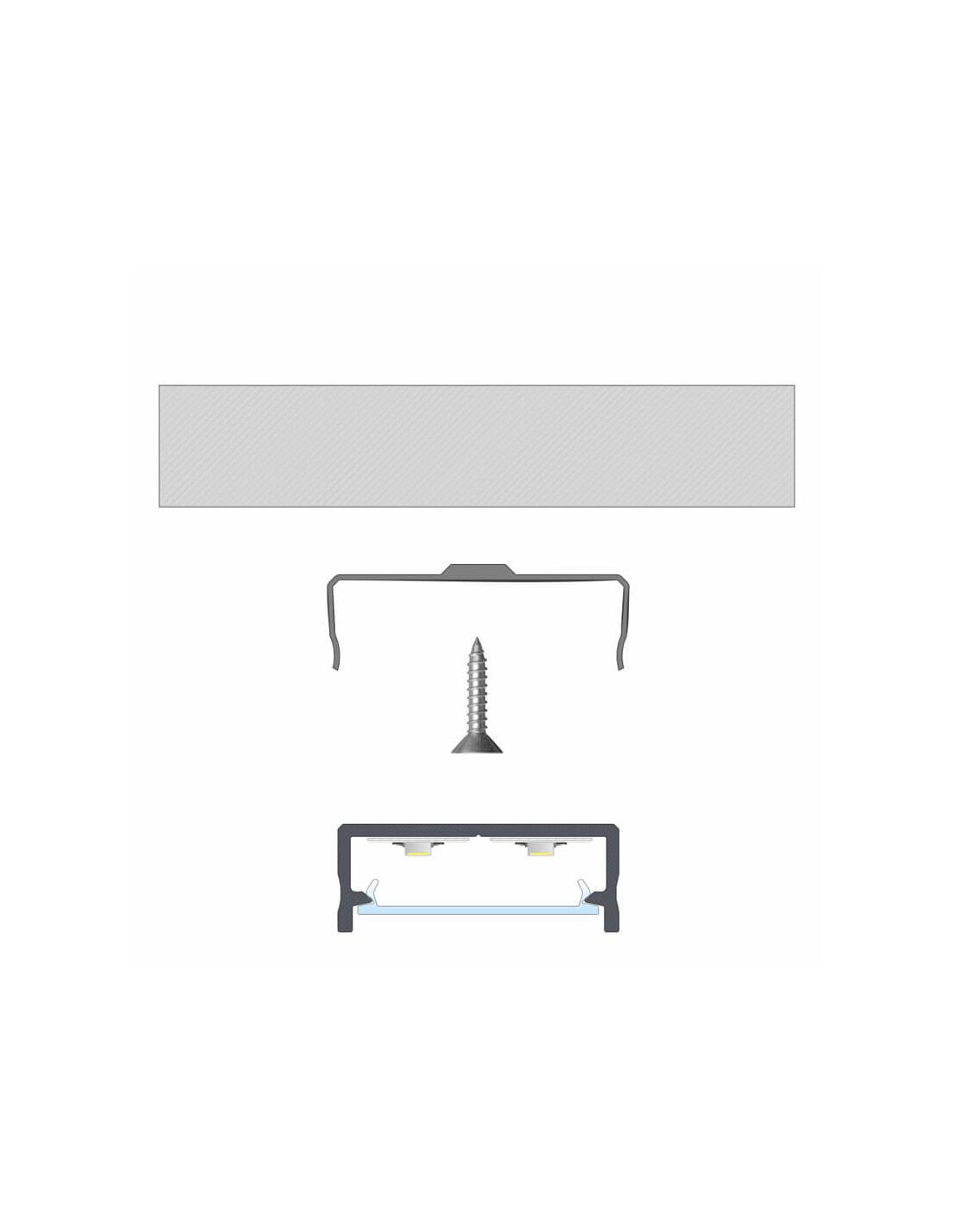 Metallclip, der mit einer Schraube befestigt wird, geeignet zur Befestigung des Dual-Profils für Aluminium-LED-Streifen Typ Dual, es wird empfohlen, mindestens 2 Clips pro 2 Meter Profil zu installieren.