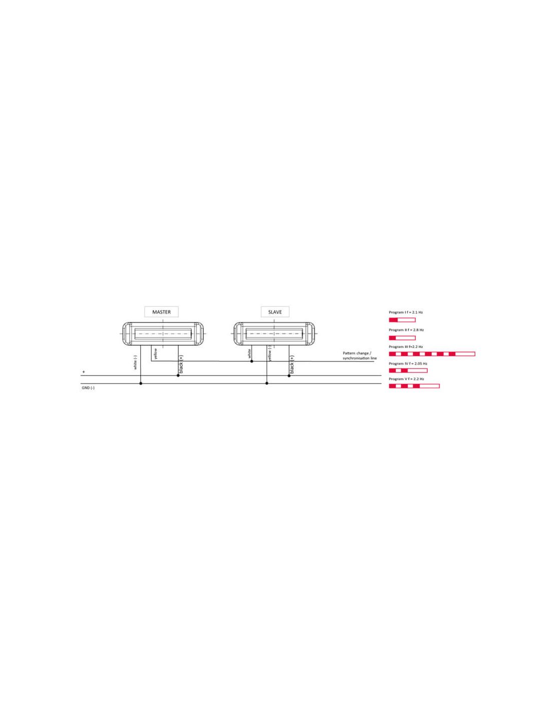 Im SLAVE-Modus wird durch Überbrücken des weißen Kabels mit der Masse für 5 Sekunden der Modus umgeschaltet.
