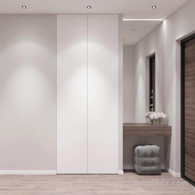 Er verfügt über ein drehbares System mit einem Öffnungswinkel von 40º, ideal um Akzente in Vitrinen, Regalen, Fluren oder dekorativen Bereichen zu setzen und Blendungen zu vermeiden.