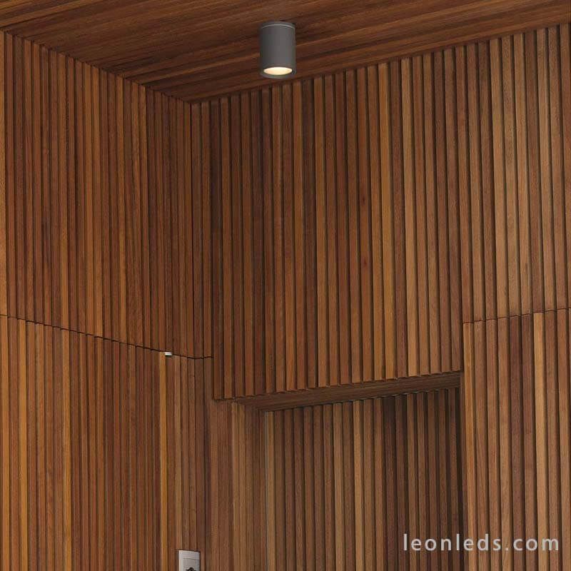 Es ist eine moderne Außenleuchte, die ideal für die Installation im Vordach ist. Je nach Größe des Vordaches sollten wir eine oder mehrere installieren, wobei wir berücksichtigen müssen, dass jede installierte Leuchte Licht ähnlich einer 50 W Halogenbirne abgibt. Wir empfehlen die Installation einer LED-Birne GU10 mit einer Leistung zwischen 5 und 7 W und einem warmen Lichtton mit einem Lichtstrahlwinkel von 120º.