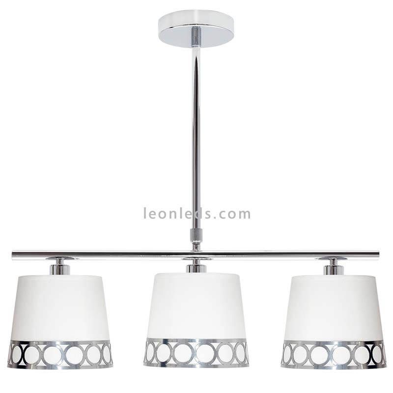 Moderne Deckenlampe 3 Lichter Silber und Weiß höhenverstellbar mit einem modernen Design aus der Kollektion Dalia, benötigt 3 LED-Lampen mit Fassung E14 (nicht enthalten), die Abmessungen kannst du in einem der Fotos sehen.