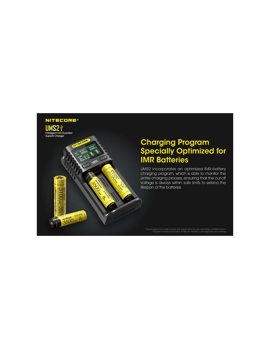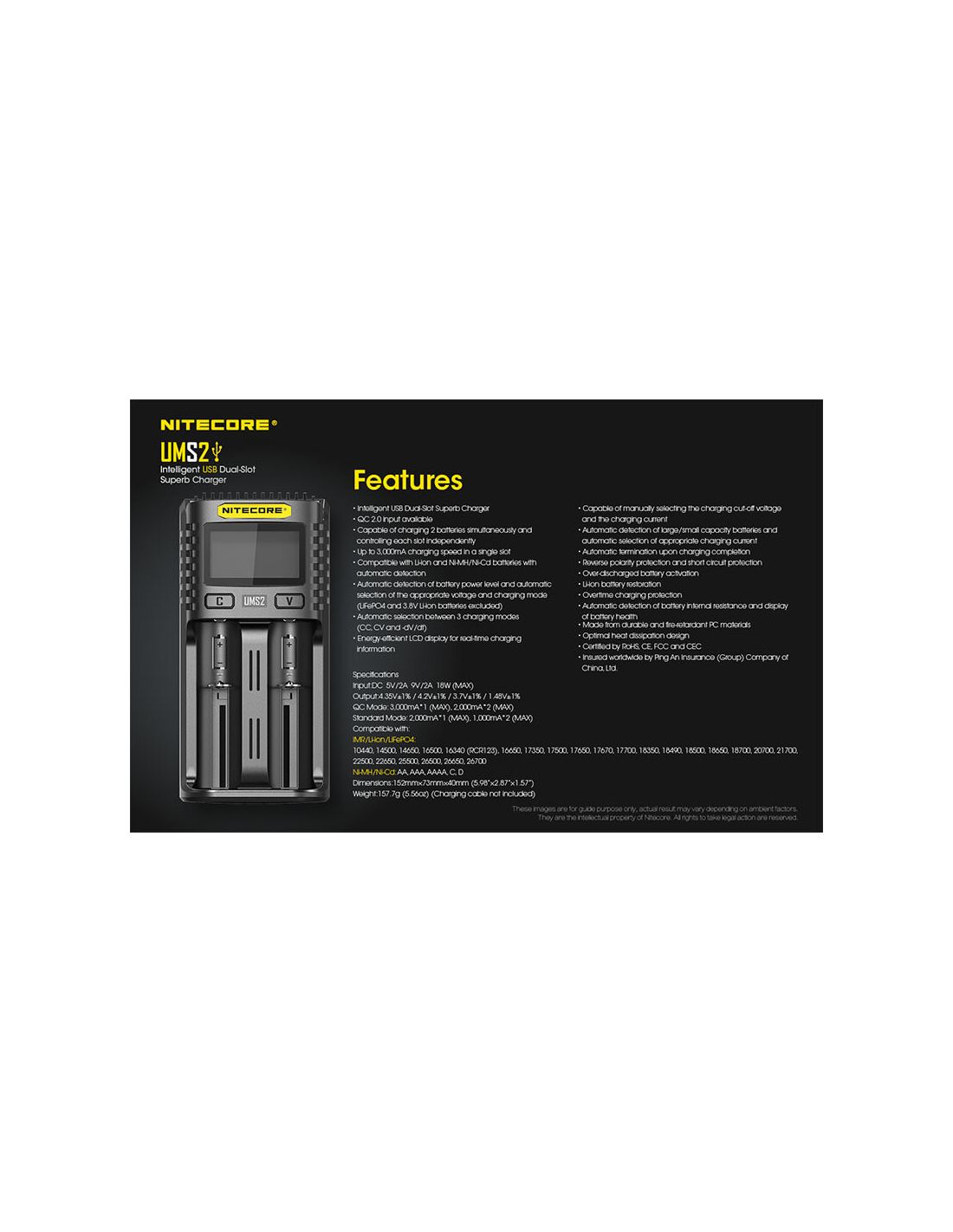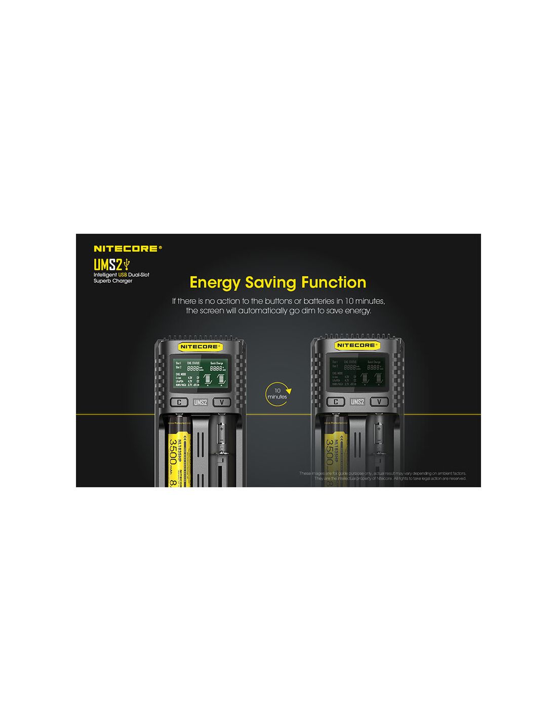 Das Nitecore UMS2 Ladegerät zeichnet sich durch seine Effizienz aus, da es eine 3000mA-Batterie in nur 55 Minuten auflädt. Diese Geschwindigkeit macht es zur bevorzugten Wahl für Nutzer, die eine schnelle und effiziente Ladung benötigen.