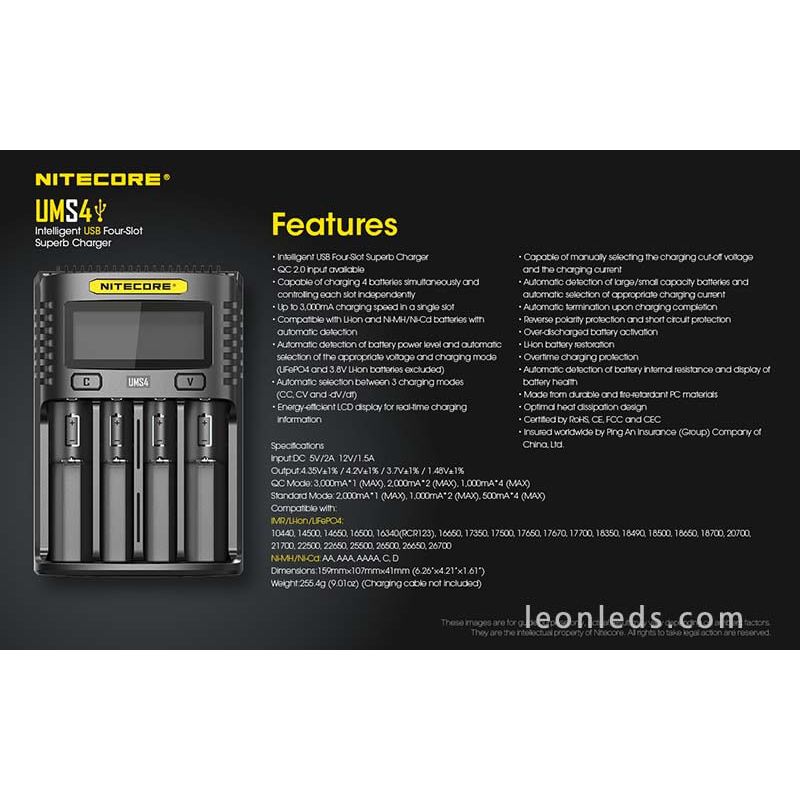 Eigenschaften des Nitecore UMS4 Ladegeräts: