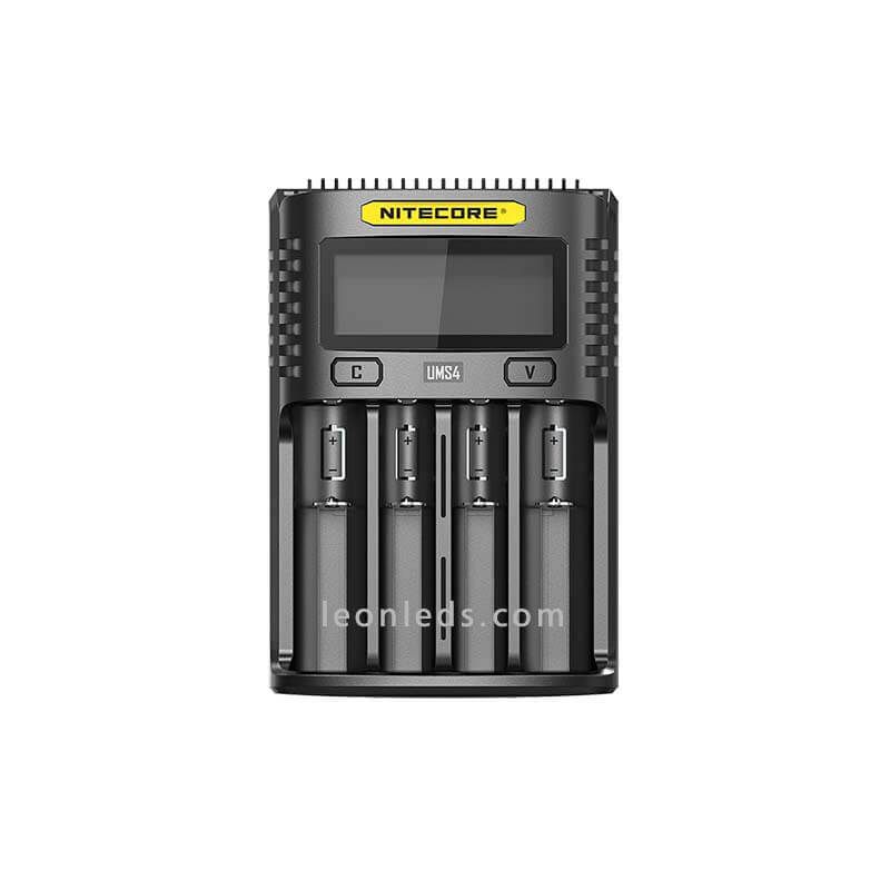 Batterieladegerät Nitecore Modell UMS4, das das gleichzeitige Laden von 4 Batterien mit LCD-Ladeanzeige ermöglicht.