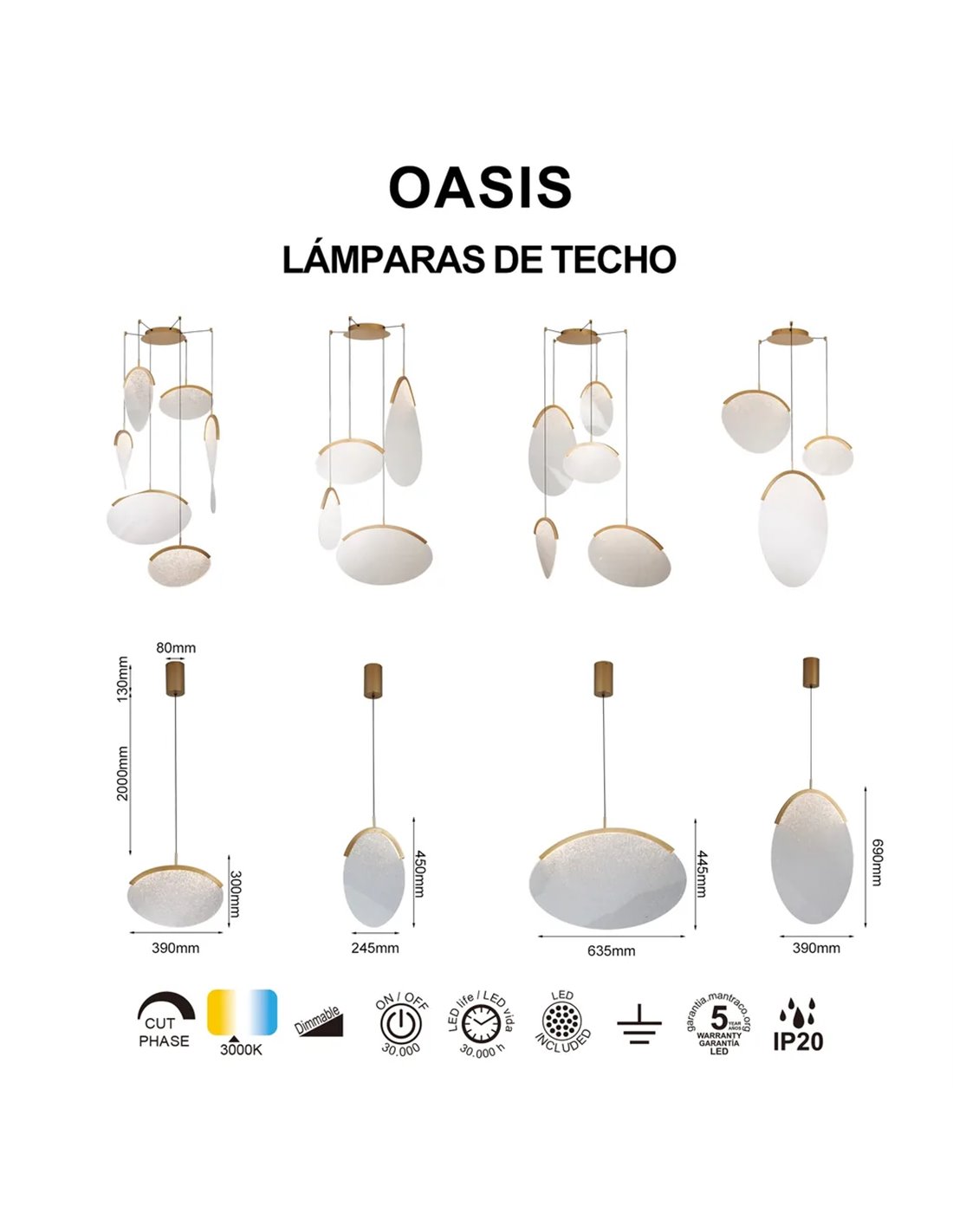 Die goldene LED-Pendelleuchte OASIS 40W verfügt über drei Leuchten , eine Farbtemperatur von 3000K und 1400 Lumen . Dank TRIAC-Dimmung eignet sie sich ideal für Tische, Küchen und kleine Räume, die eine moderne und einladende Dekorationsbeleuchtung benötigen.