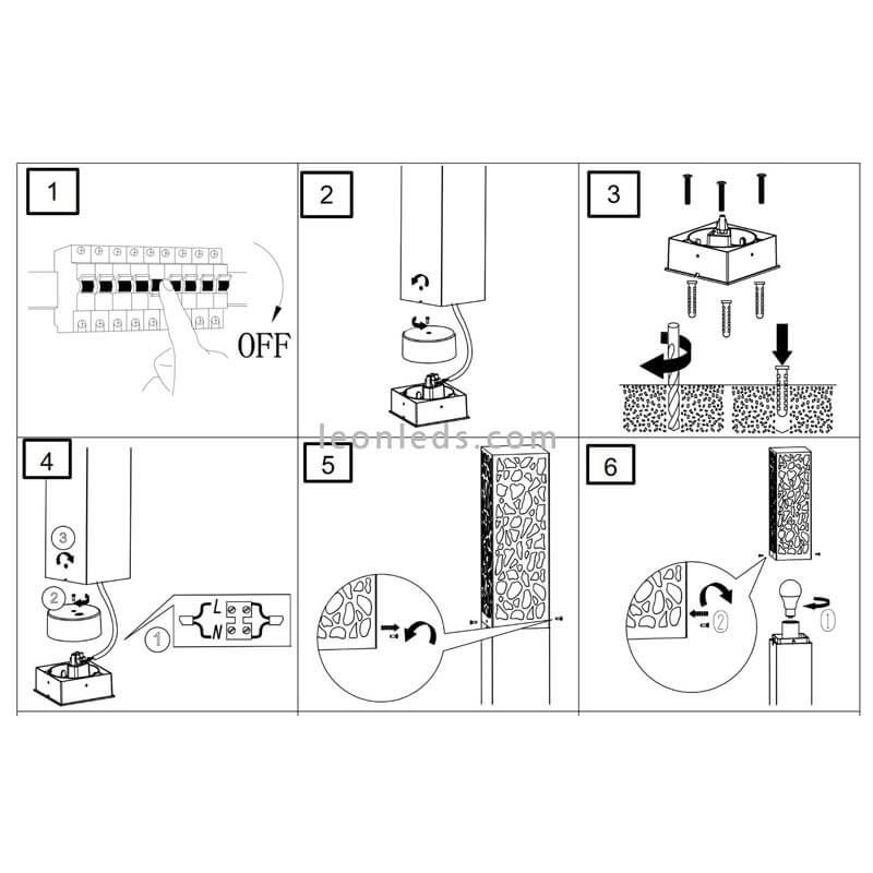 Ihre Struktur ist modern. Es ist eine ideale Leuchte zur Beleuchtung von Zugängen zu Außenwohnungen dank ihrer Höhe von 100 cm. Ihr Installationssystem ist einfach und schnell, mit Anschluss ans Stromnetz. Ideal für die Beleuchtung von Treppen, Stufen und Durchgangsbereichen.