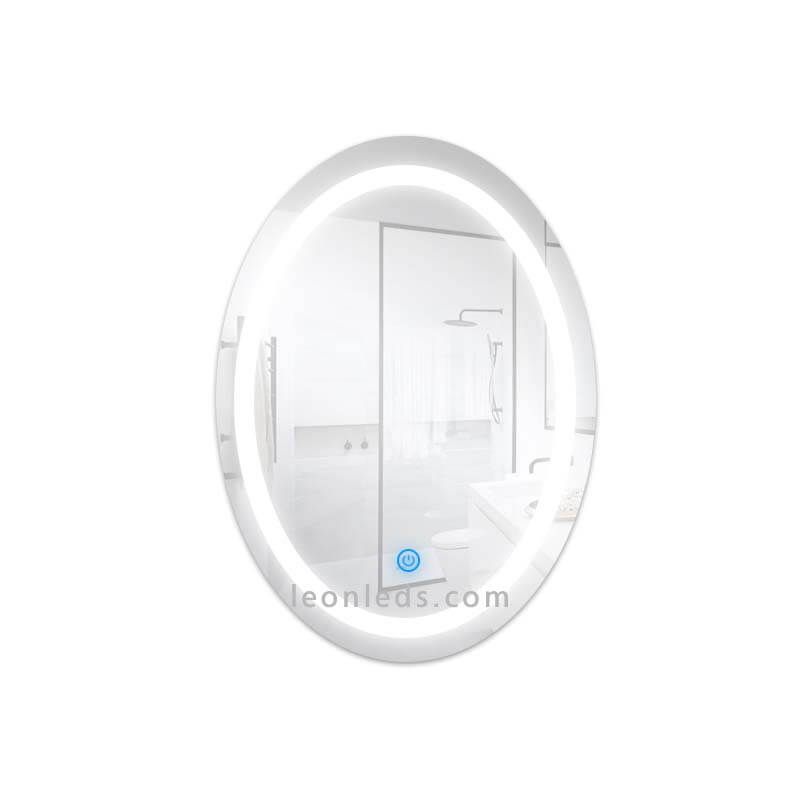 Ovaler LED-Spiegel mit Licht um den gesamten Spiegelrand, mit einer Leistung von 15W und einer Lichtintensität von 1.500Lm. Er hat eine Höhe von 70 cm, eine Länge von 55 cm und eine Dicke von 3 cm. Dieser Spiegel ist in Weißlicht (6500K) erhältlich.