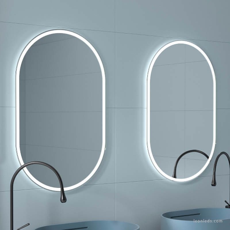 Ovaler LED-Spiegel für das Badezimmer aus der Kollektion Luzón des spanischen Herstellers Eurobath. Er enthält LED-Technologie mit einer Leistung von 20W und eine Lichtstärke von 2.521Lm. Er ist in 3 Lichttönen erhältlich: 5700K weißes Licht, 4000K natürliches Licht (empfohlen) und 3000K warmes Licht. Um das LED-Licht zu aktivieren, können Sie zwischen 2 Optionen wählen: ohne Schalter, der ermöglicht, das LED-Licht über den Wandschalter einzuschalten, oder mit einem Touch-Schalter, der den Schalter an der Unterseite des Spiegels integriert.