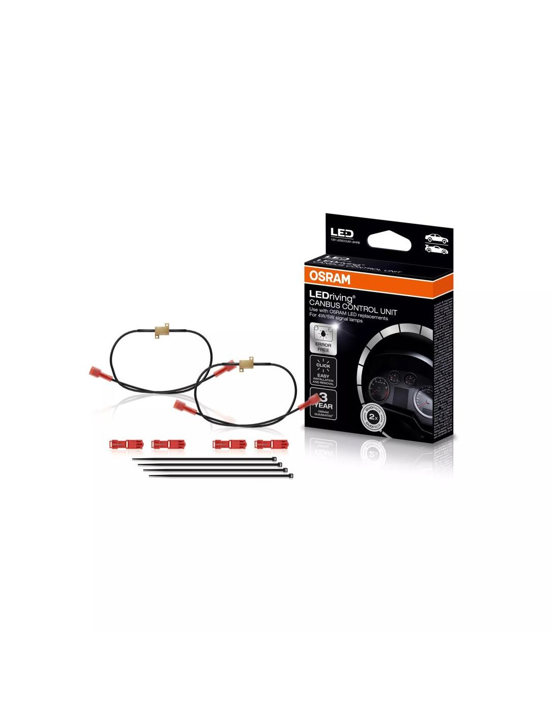 Pack mit 2 CanBus-Widerständen, geeignet für Fahrzeuge mit 12V Spannung und einem Verbrauch von 5W. Diese Widerstände beseitigen die Fehlermeldung bei defekter Glühbirne im Armaturenbrett, die durch die Installation einer LED-Glühbirne verursacht wird, da diese einen minimalen Stromverbrauch hat und unser Fahrzeug interpretiert, dass die Glühbirne defekt ist. Diese Box enthält 2 Widerstände, 4 Kabelbinder und 4 Stromanschlüsse.