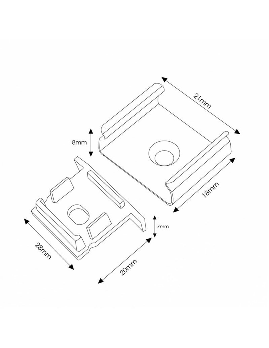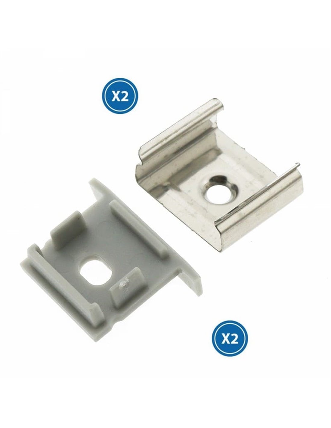 Pack mit Zubehör für LED-Profil entworfen für das Profil LM3767. Enthält 2 Endkappen für den Abschluss der Enden und 2 Befestigungsklammern, um das Profil stabil zu sichern. Eine praktische Lösung, um deine Installation mit LED-Streifen ordentlicher und mit einer sauberen Abdeckung zu gestalten.