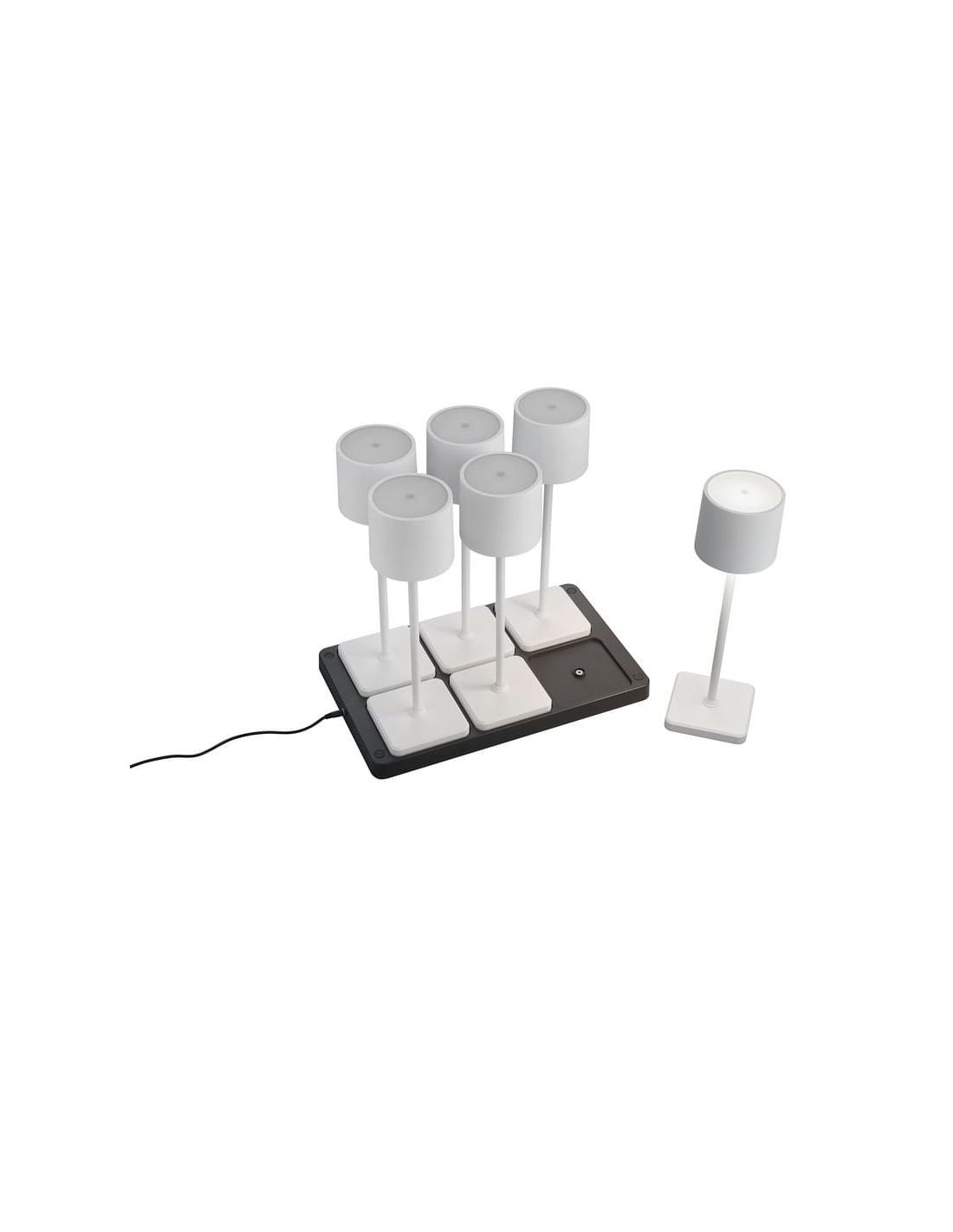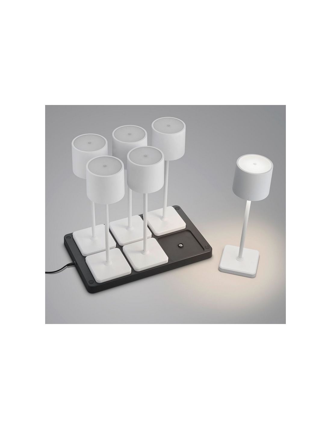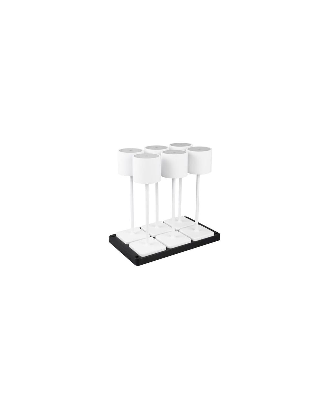 Das Pack mit 6 dimmbaren Tischlampen LED FERNANDEZ bietet ein einladendes Licht für Innen und Außen. Mit wiederaufladbarer Batterie, inkludierter Ladestation und Schutzgrad IP54 sind diese Lampen ideal, um eine angenehme und kabellose Atmosphäre in Innen- und Außenräumen zu schaffen.