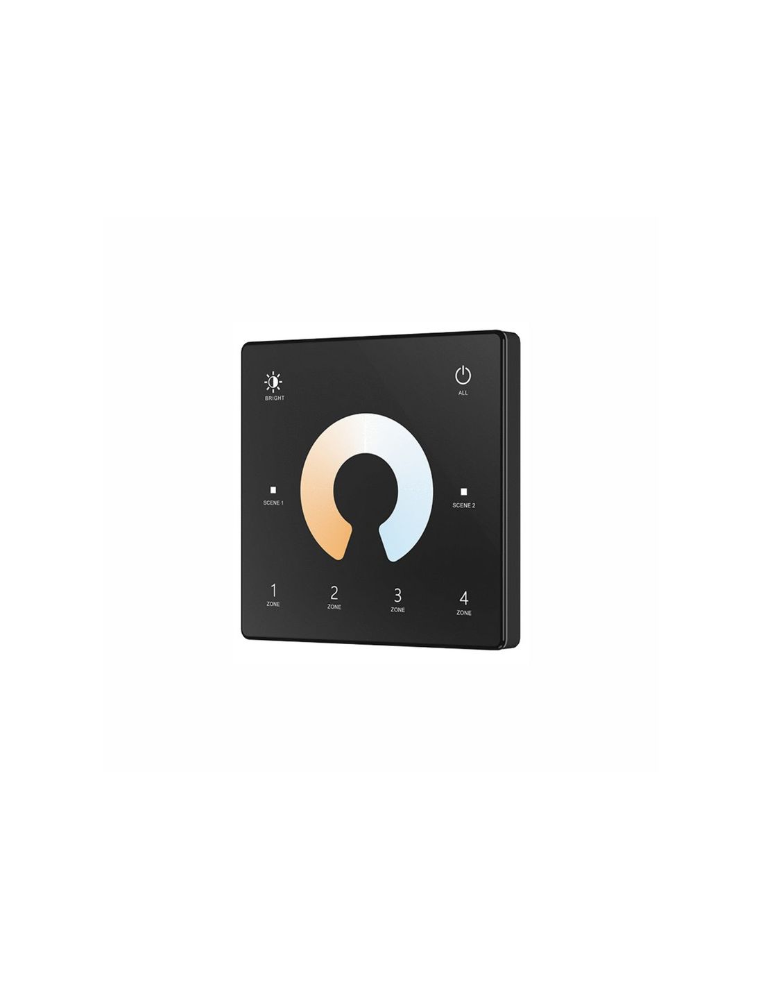 Das Panel ermöglicht die Verwaltung von bis zu 4 unabhängigen Zonen, wobei jede Zone einzeln ein- und ausgeschaltet sowie die Helligkeit und den Weißton (von Warmweiß bis Kaltweiß) angepasst werden kann.