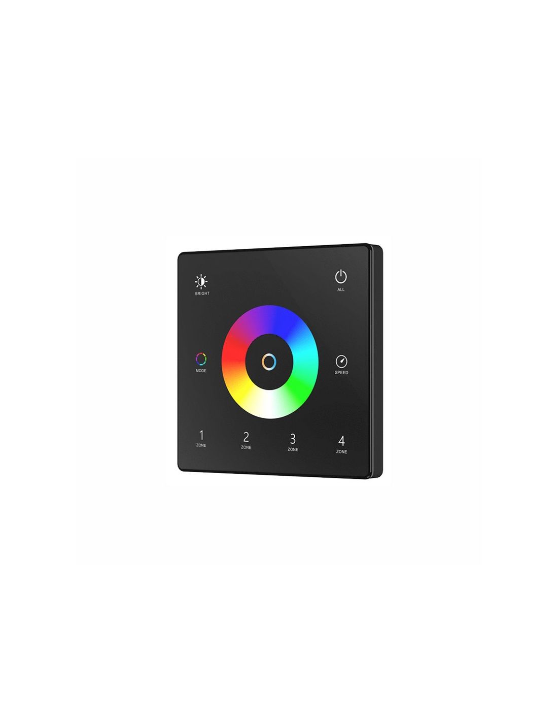 Das Tuya RF RGB+CCT Panel mit 4 Zonen ist ein Wandcontroller, der für das vollständige Management von RGB+CCT LED-Streifen konzipiert wurde, wodurch dekorative Farbbeleuchtung mit priziser Regelung des dimmbaren Weißlichts in einer einzigen Installation kombiniert wird.