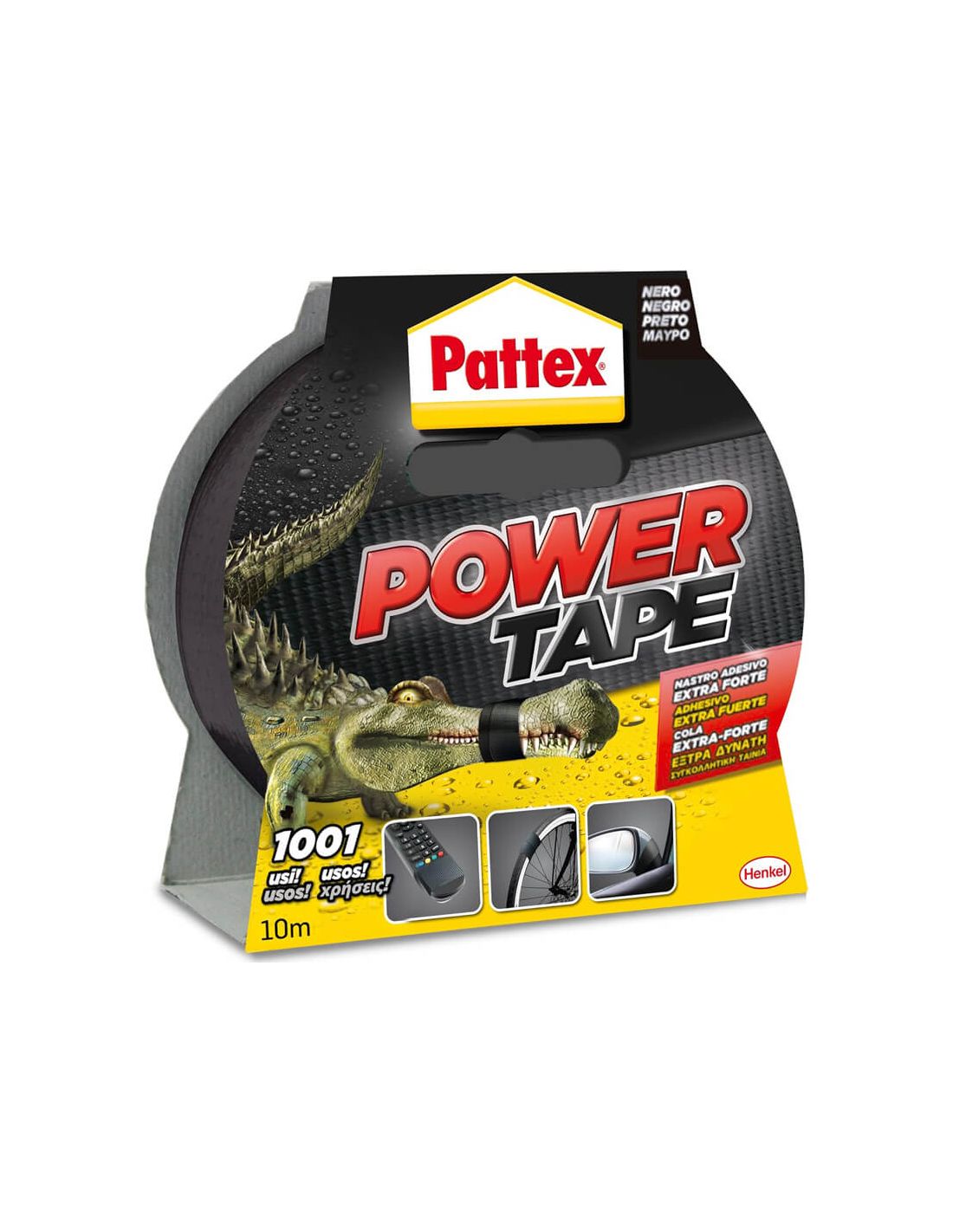 Extra starkes schwarzes PATTEX Power Tape 50mm x 10m. Dreischicht-Technologie, die wasser-, druck- und temperaturbeständig ist. Lässt sich von Hand schneiden. Ideal für Innen- und Außenreparaturen.
