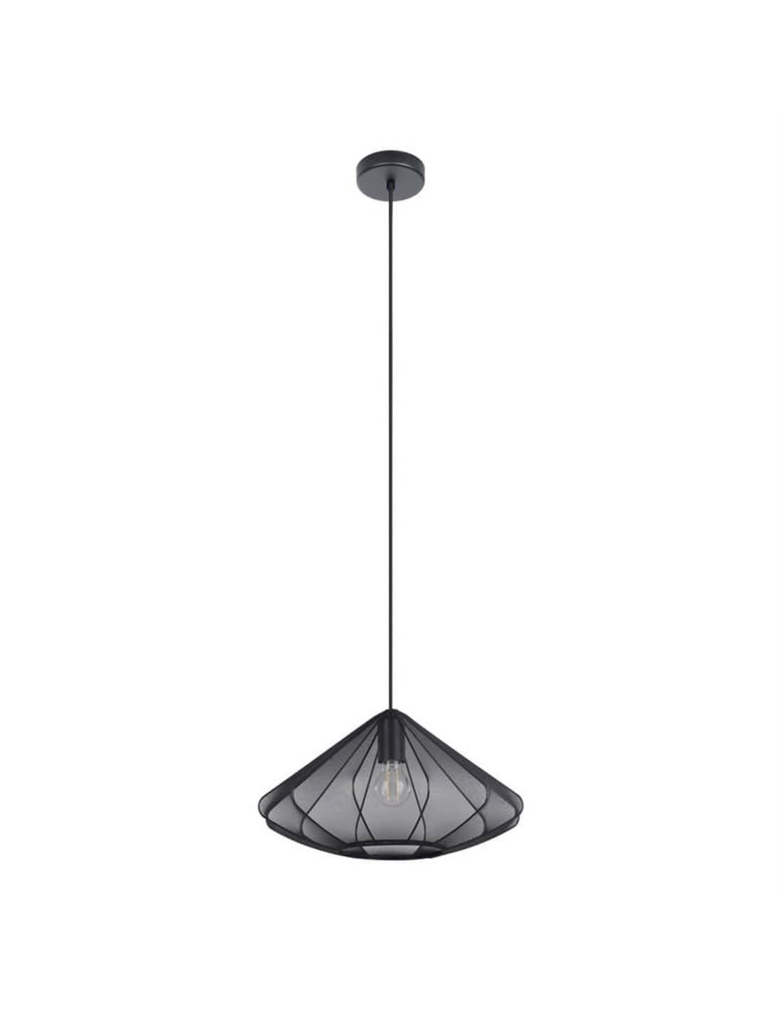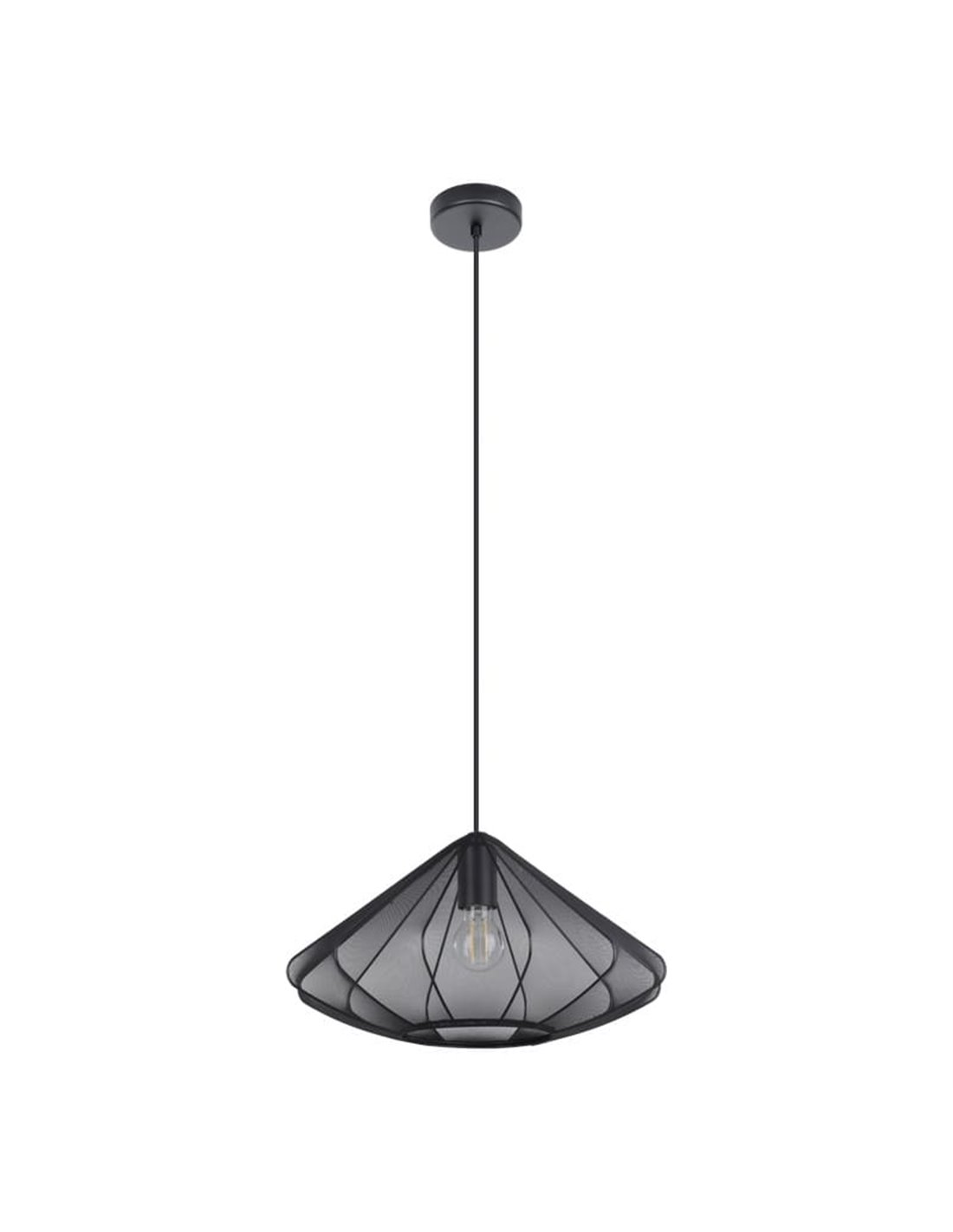 Pendelleuchte DOLWEN von Eglo mit schwarzem Textilschirm und Stahlelementen. Durchmesser 42,5 cm. Kompatibel mit E27-Glühbirnen (nicht enthalten). Perfekt zur Beleuchtung großer Räume mit einem modernen Akzent.