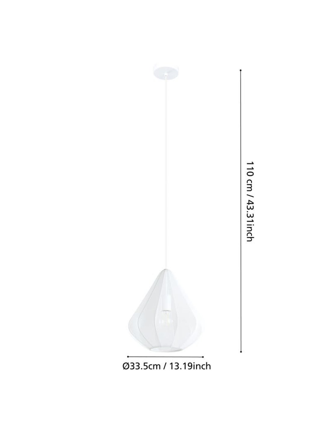 Die Pendelleuchte DOLWEN in Weiß kombiniert einen sanften Textilschirm mit Stahlelementen und bietet eine raffinierte und einladende Beleuchtung. Mit einem Durchmesser von 33,5 cm eignet sie sich perfekt für Wohnzimmer, Esszimmer oder Küchen. Kompatibel mit E27-Glühbirnen (nicht enthalten), ermöglicht sie die Anpassung des Lichts nach Bedarf und schafft eine moderne und elegante Atmosphäre.
