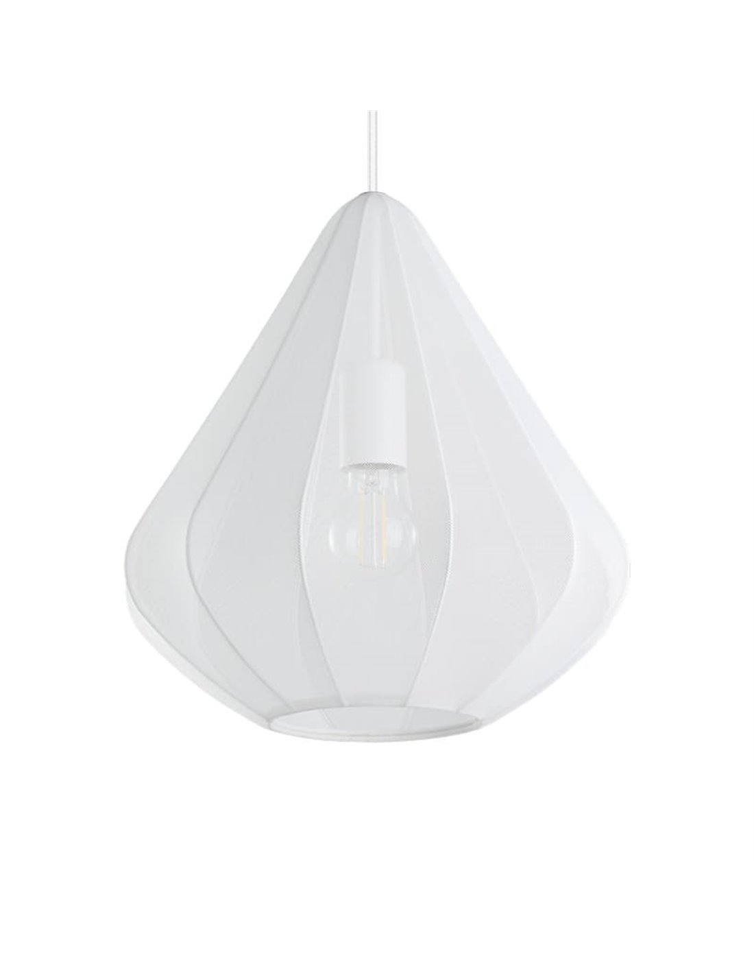 - Elegantes Design: Weißer Textilschirm kombiniert mit Stahlelementen, ideal für moderne Räume.