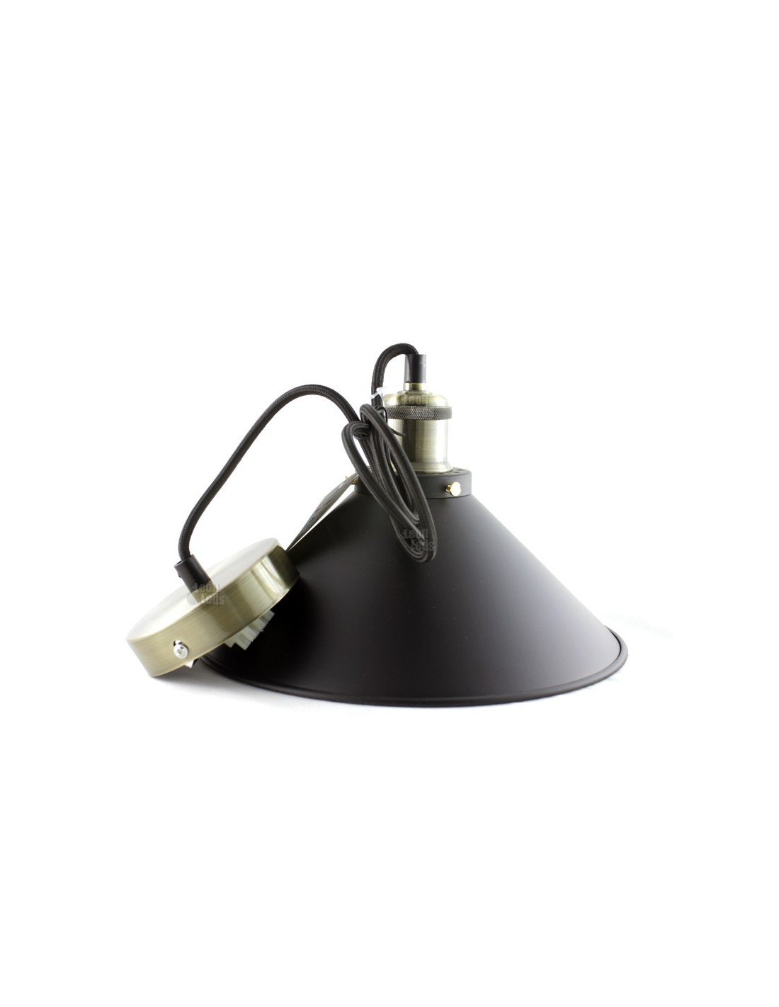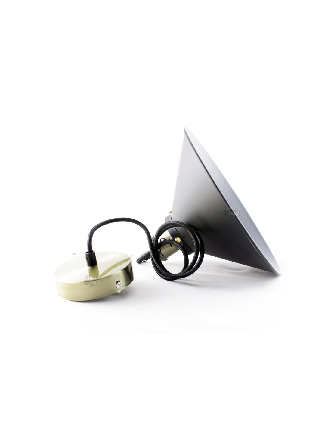 Pendelleuchte in Glockenform im Vintage-Stil mit einem mattschwarzen Metallschirm mit einem Durchmesser von 25 cm und einer maximalen Höhe von 108 cm, die regulierbar ist.