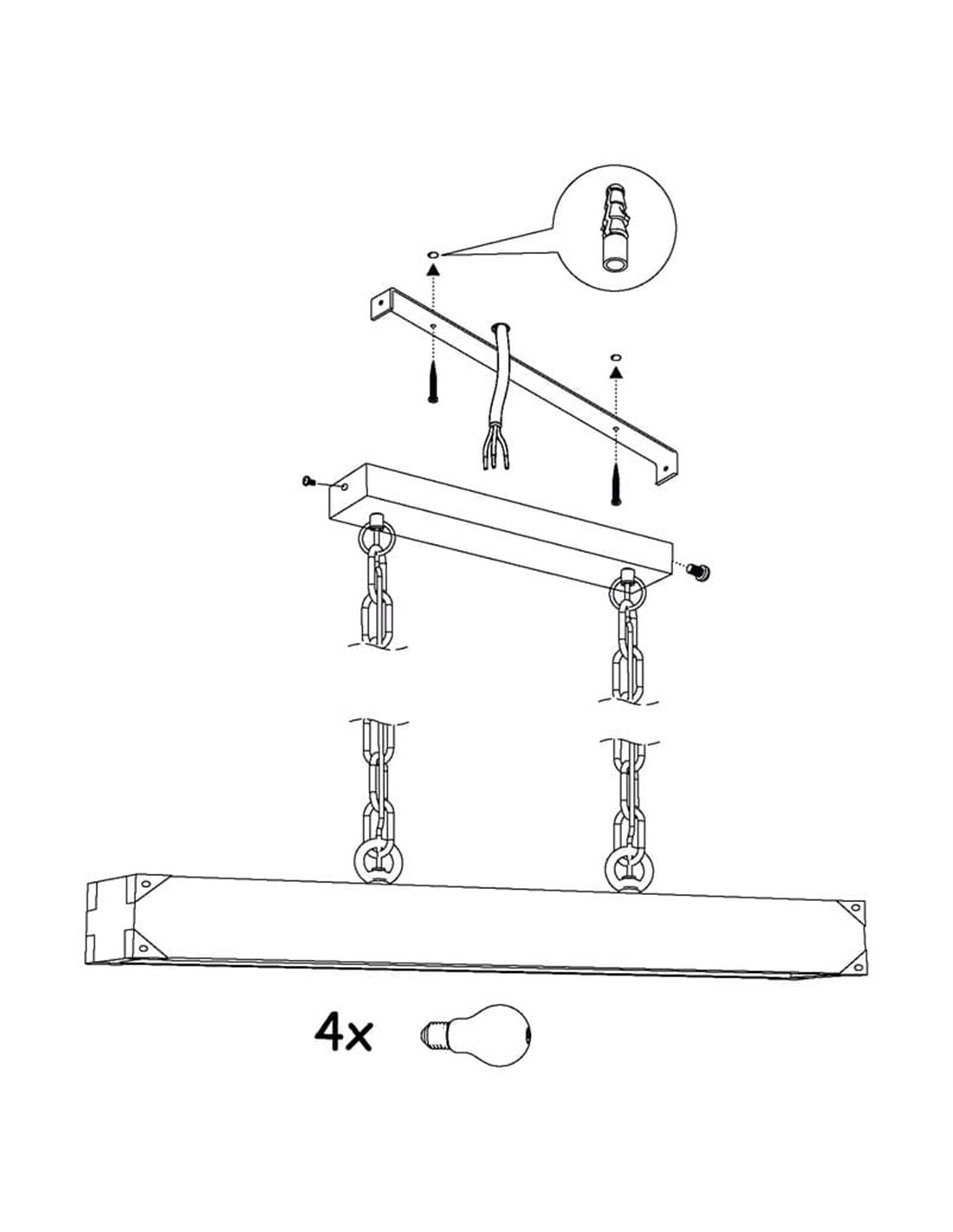 - Vier E27-Fassungen: Kompatibel mit LED- oder traditionellen Glühbirnen bis 40 W (nicht enthalten).