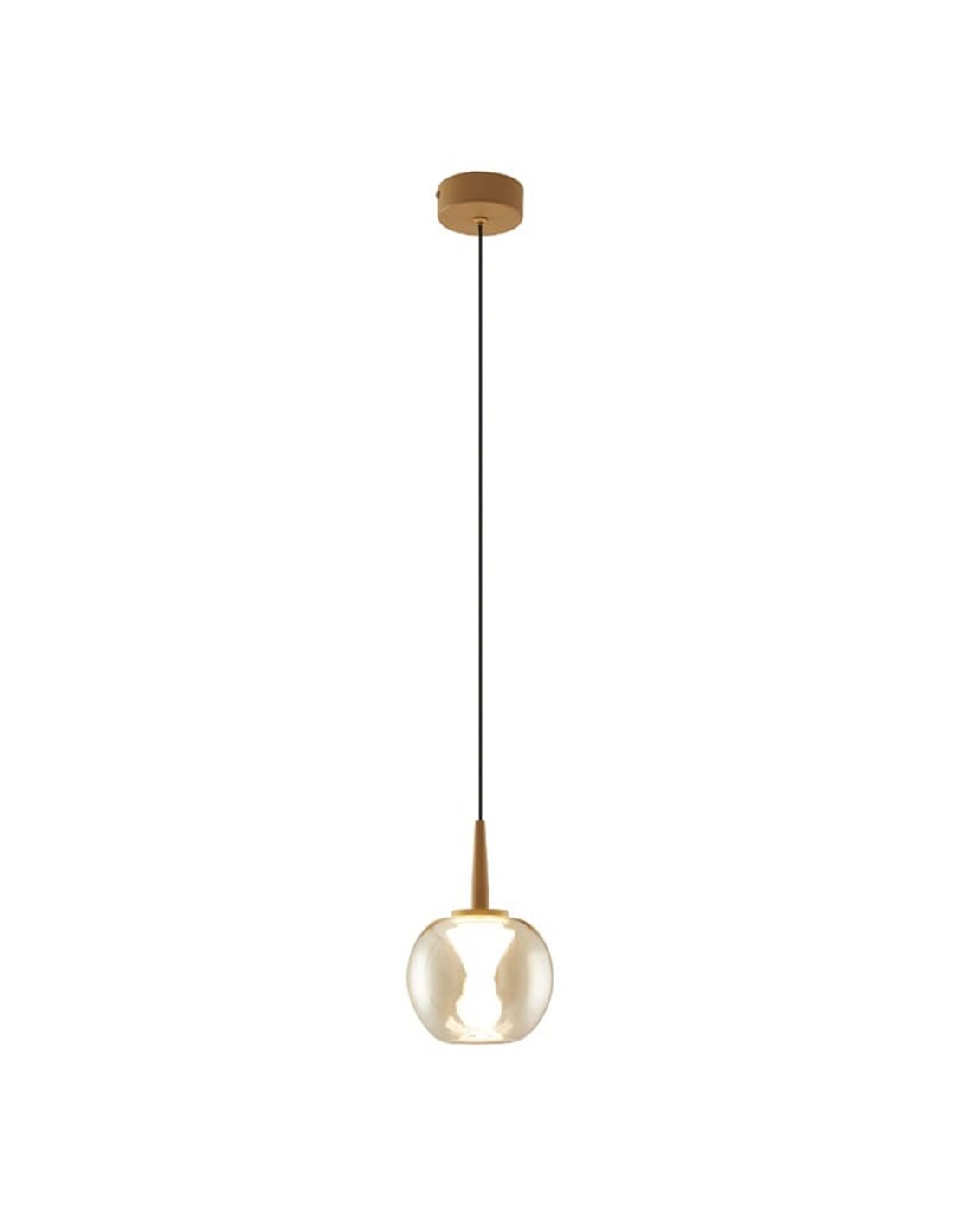 ANDROMEDA Pendelleuchte LED 5W 3000K goldener Sockel Bronzeglas