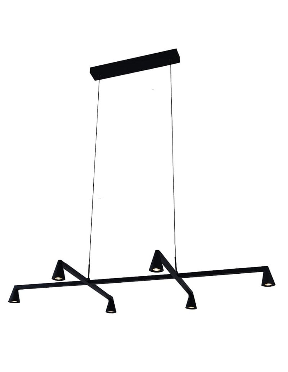 Die Pendelleuchte LED Afrika 29W ist eine perfekte Wahl für diejenigen, die nach einem modernen dekorativen Stück mit warmem und gleichmäßigem Licht suchen. Ihre lineare Struktur von 110 cm und die 6 Lichtpunkte erzeugen eine stilisierte und elegante Präsenz, die perfekt in minimalistische und zeitgenössische Innenräume passt.