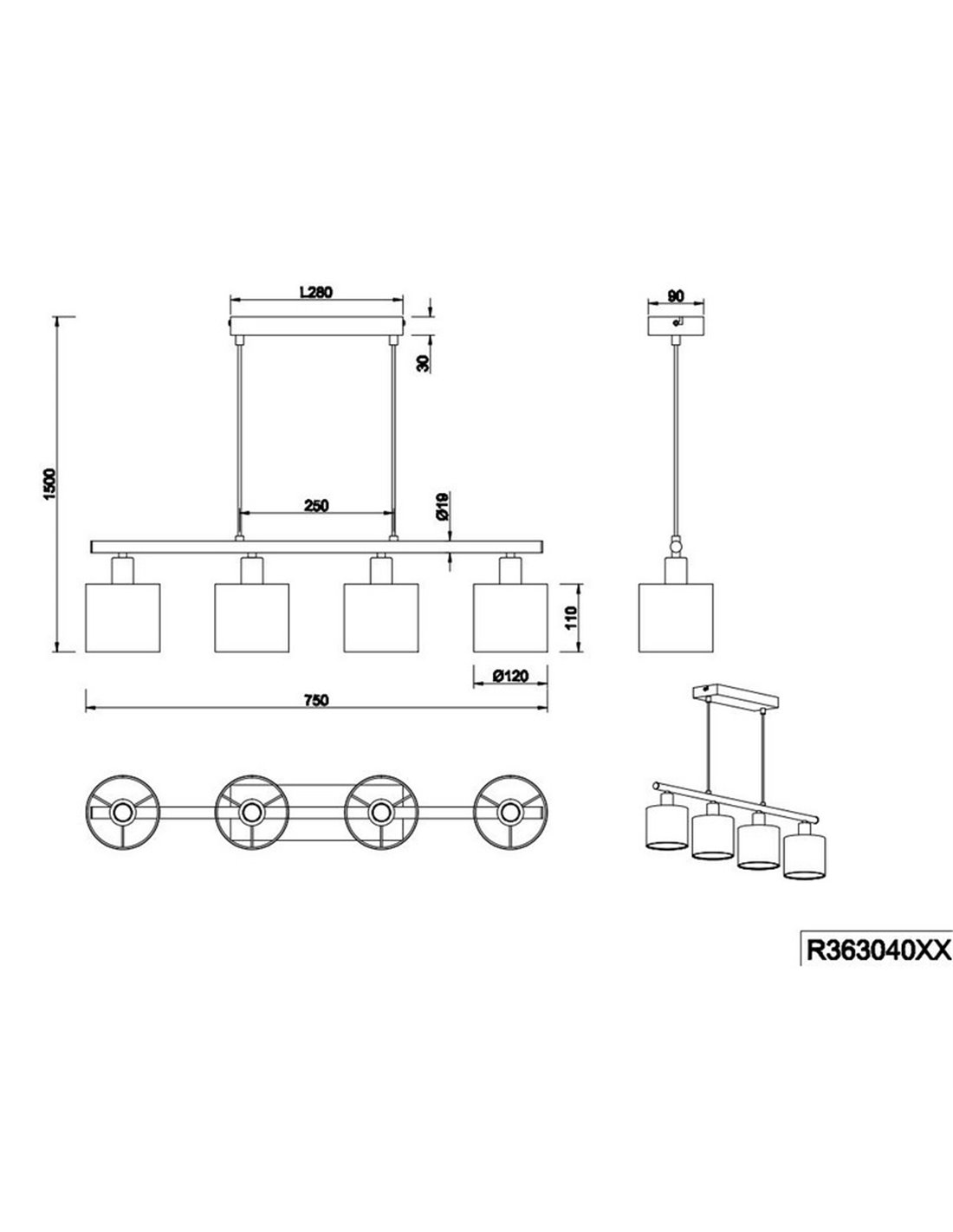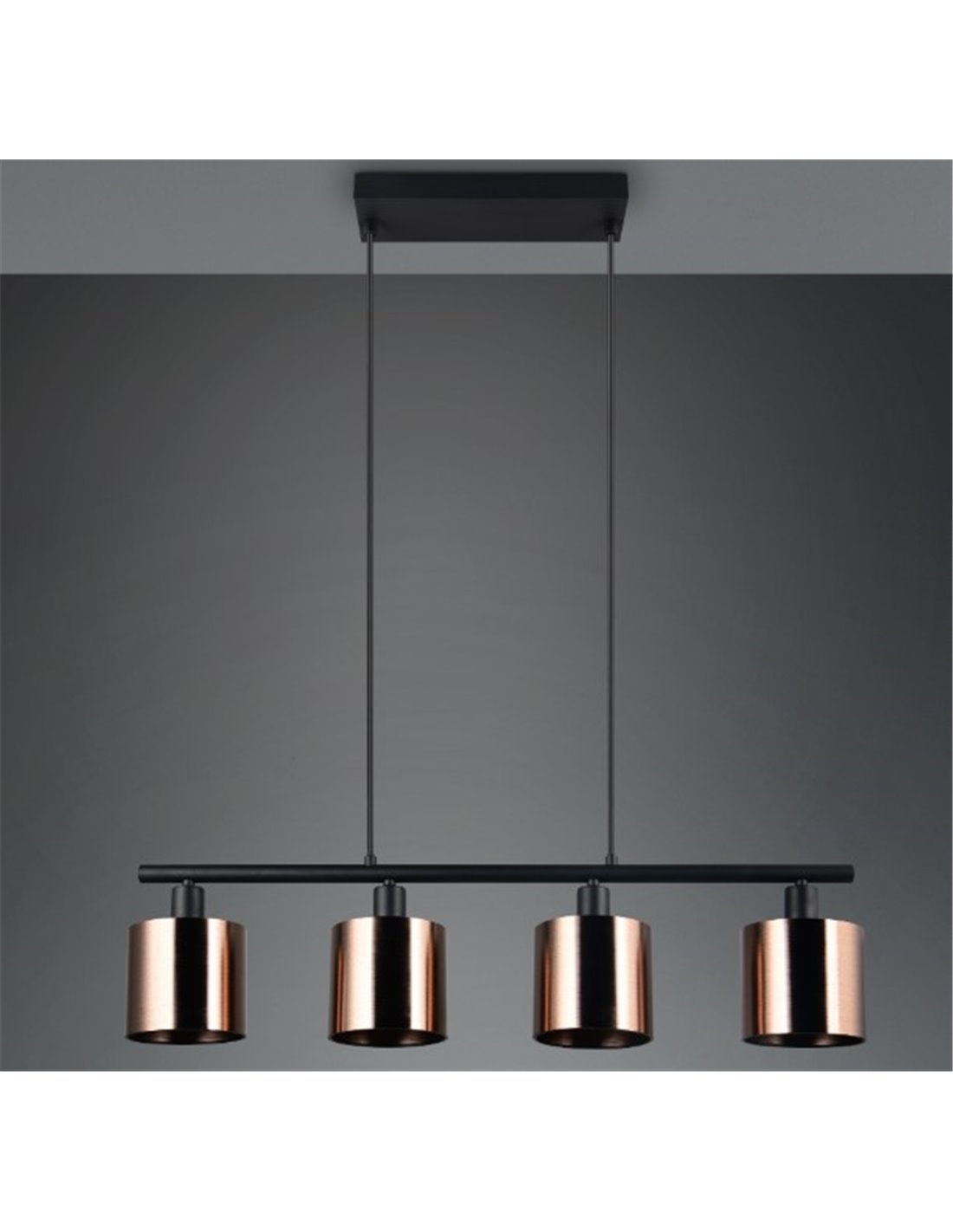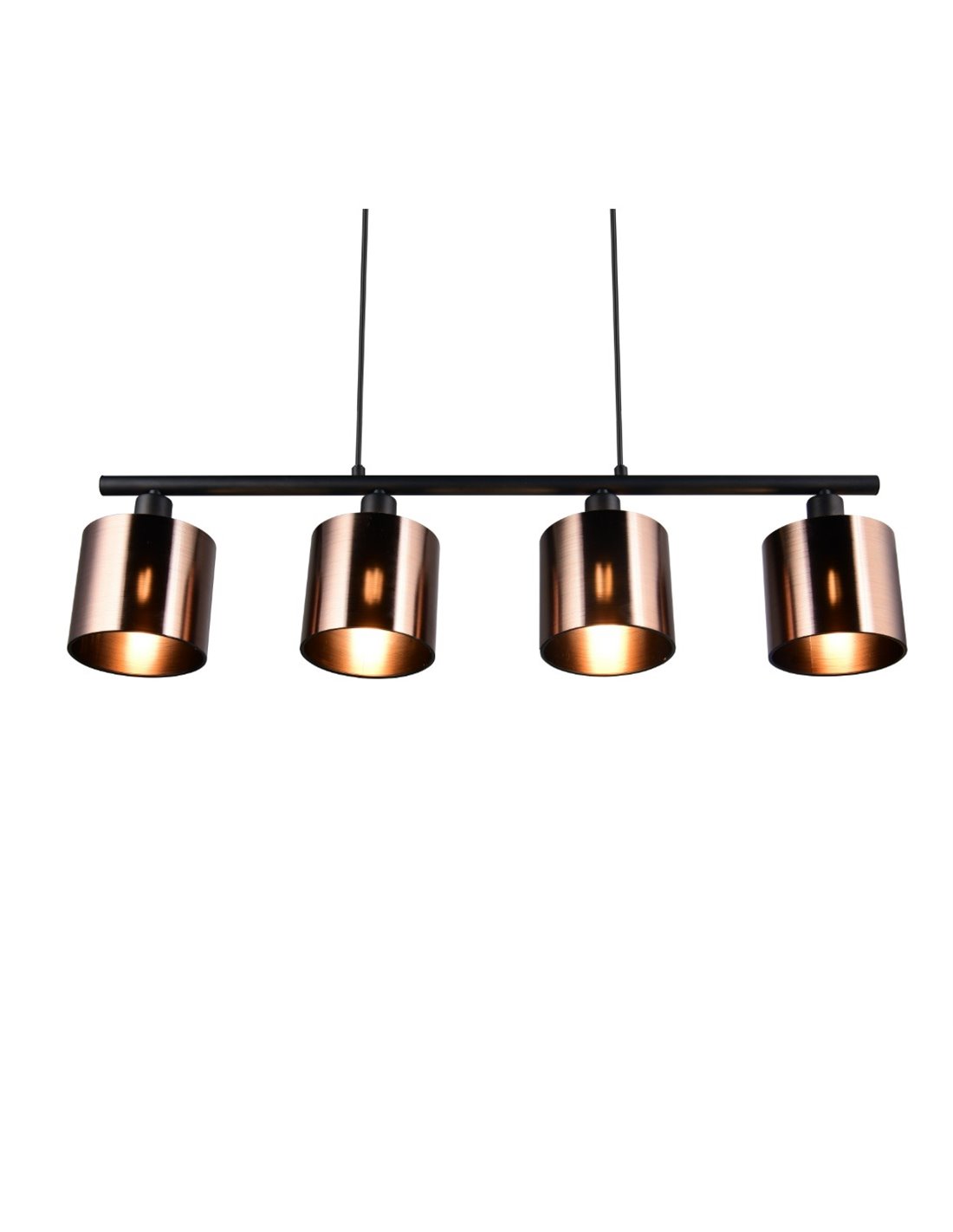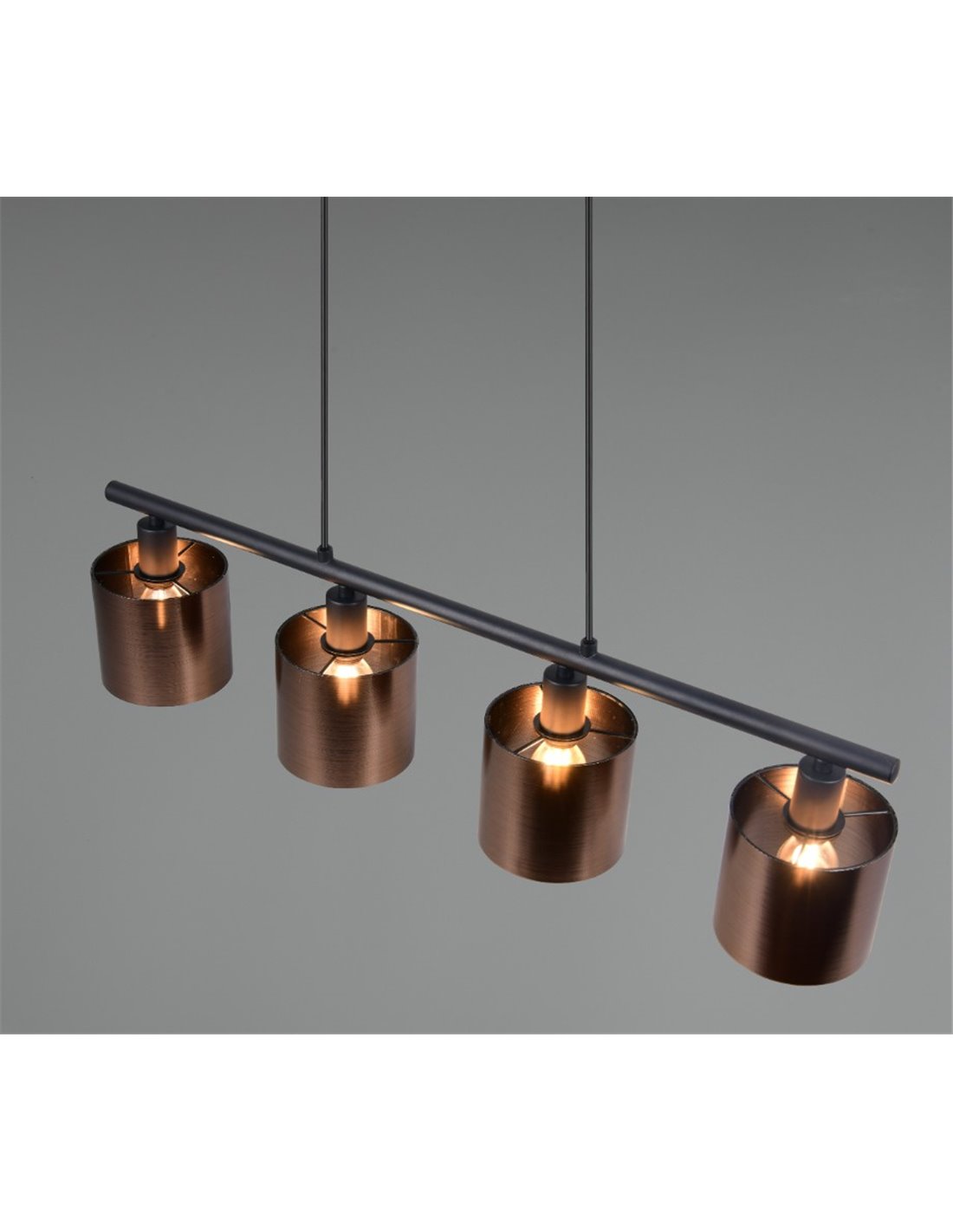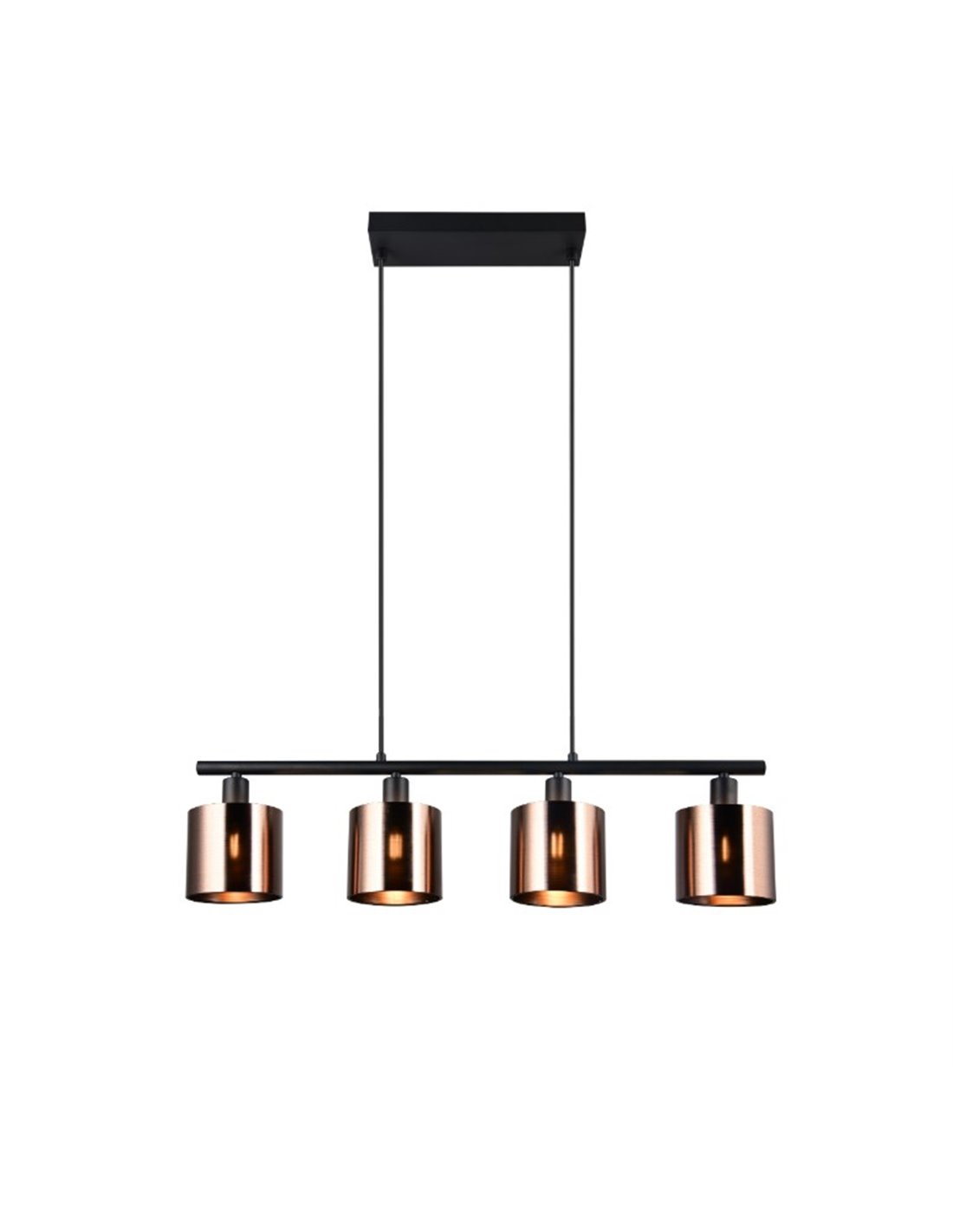 Die Pendelleuchte JASON mit 4 Glasschirmen und höhenverstellbar bietet ein elegantes und modernes Design. Kompatibel mit 4 E14-Birnen von bis zu 10W (nicht enthalten), ist sie ideal für Wohnzimmer, Esszimmer oder Küchen. Zertifizierung IP20.