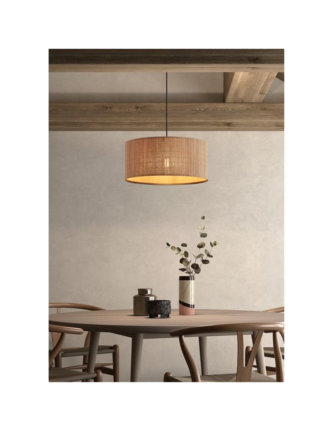 Die Pendelleuchte RAIL von MDC ist die perfekte Wahl für alle, die einen natürlichen und modernen Touch in ihrer Dekoration suchen. Mit einem Schirm aus natürlichem Bambus mit Ø40cm und Fassung E27 schafft diese Leuchte eine warme und einladende Beleuchtung. Ideal für Wohnzimmer, Esszimmer und Schlafzimmer!