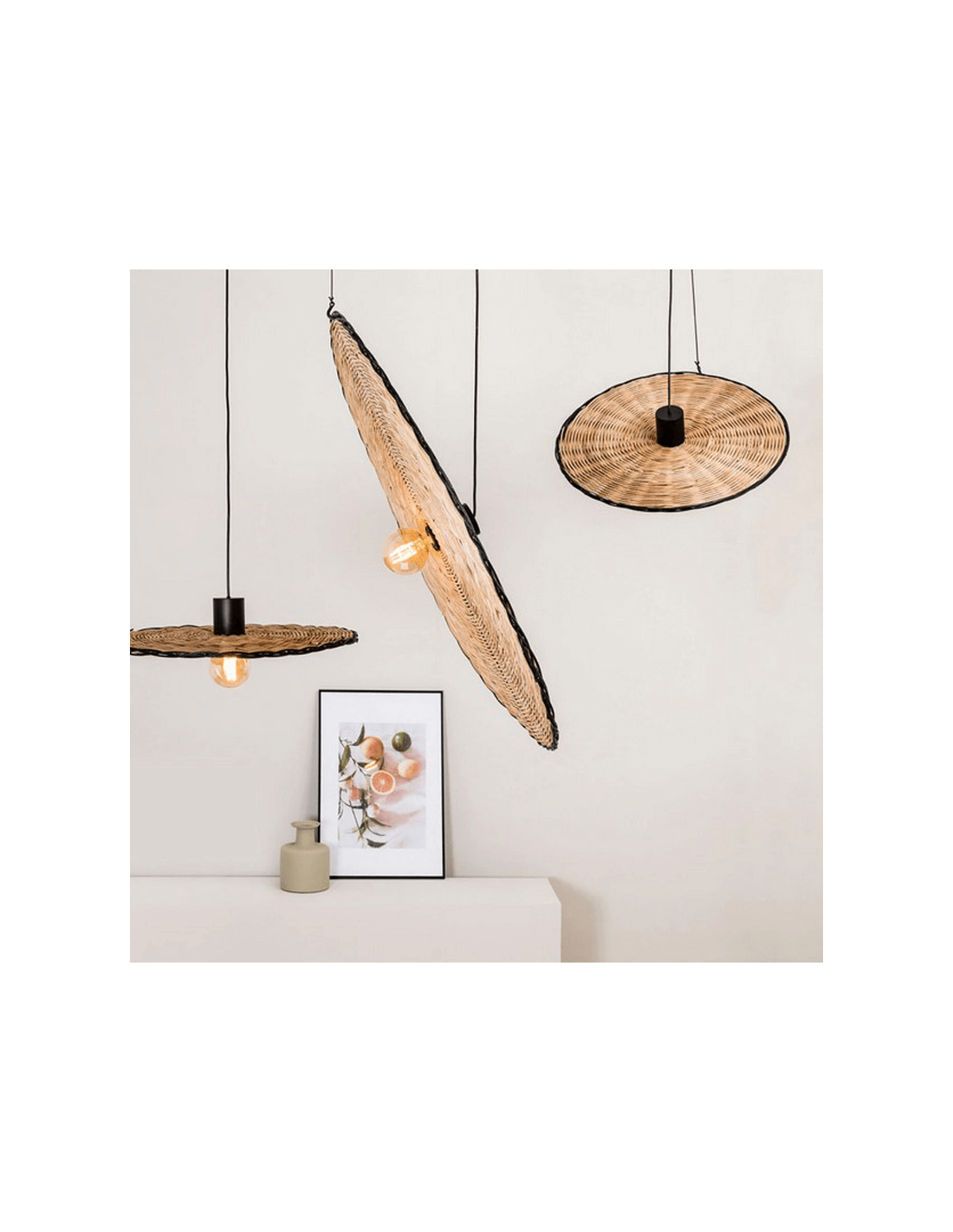 Die Pendelleuchte ø600 Costas hat die Maße 60x 2x 60 cm und wurde für die Beleuchtung aller Arten von Räumen entworfen, daher ist sie ein sehr vielseitiger Vorschlag für die Montage an der Decke. Für den Betrieb ist es notwendig, eine E27-Glühbirne (nicht enthalten) mit maximal 15W hinzuzufügen; wir empfehlen, dass sie aus Filament besteht, um ein originelleres Finish zu erzielen.