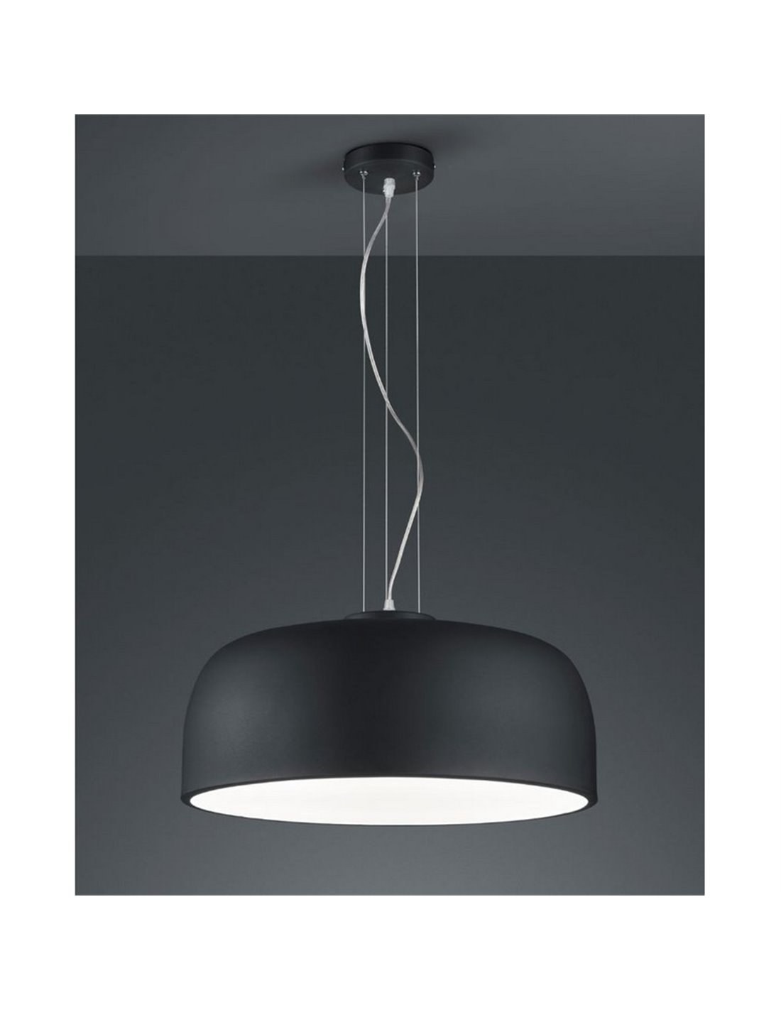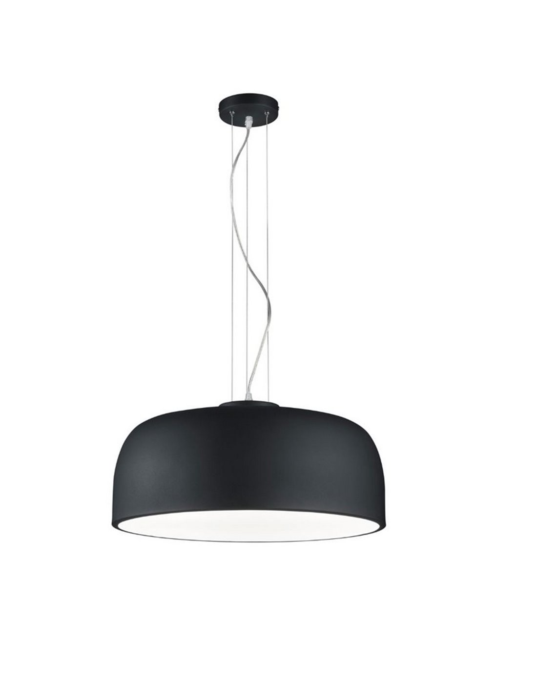 Schwarze Pendelleuchte mit einem runden Schirm mit einem Durchmesser von 52Cm in Schwarz, höhenverstellbar von 23Cm bis 150Cm.