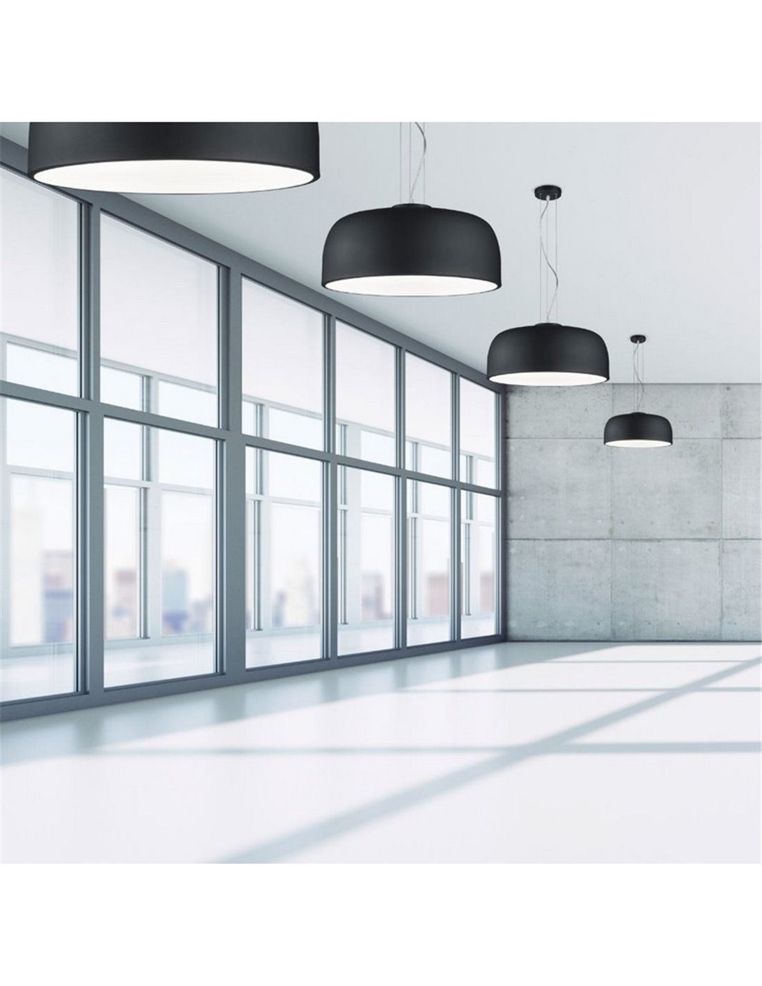 Vorteile: Hochwertige schwarze Pendelleuchte, die die Installation von 4 LED-Lampen ermöglicht und in 3 Farben sowie im Deckensockel-Format erhältlich ist.