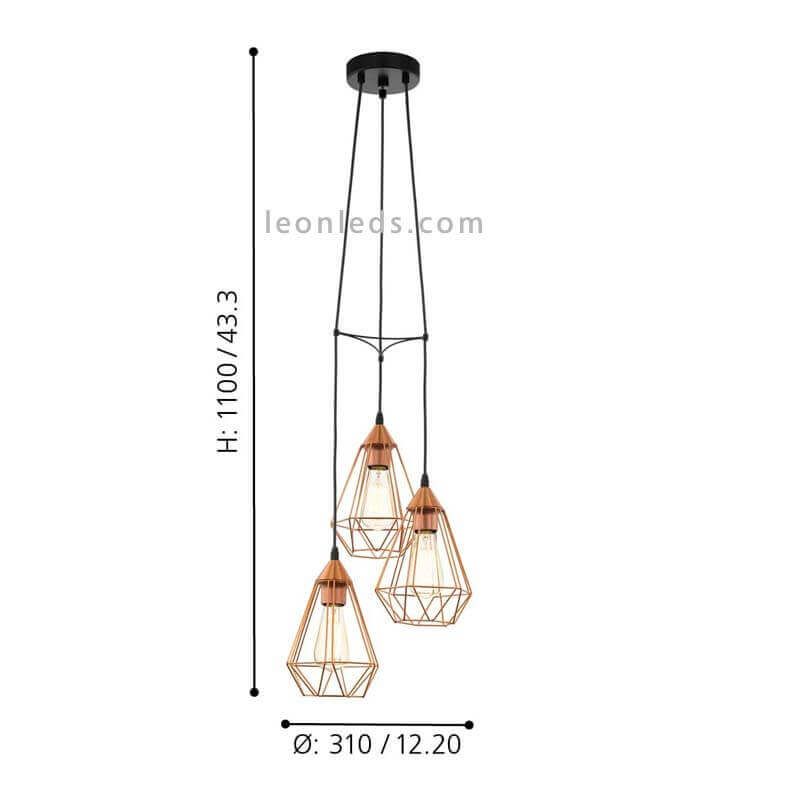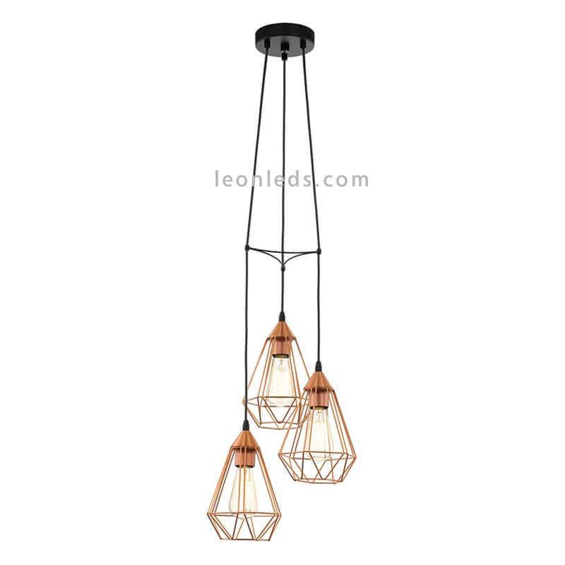 Pendelleuchte Tarbes mit 3 Lichtern in Kupferfarbe von der Marke Eglo Iluminación. Die Struktur der Leuchte besteht aus 3 Kupferfarbenen Stahlschirmen im Vintage-Stil, die durch ihre hängenden Drähte miteinander verbunden sind. Diese Schirme lassen 3 E27-Fassungen erkennen, in die 3 Glühbirnen E27 (nicht im Lieferumfang enthalten) installiert werden müssen. Es wird empfohlen, LED-Glühbirnen mit Filament und einem warmen Lichtton, beispielsweise 3000K, zu installieren, um den Vintage-Effekt der Lampe zu verstärken. Die Leistung variiert je nach den Abmessungen des zu beleuchtenden Raumes zwischen 10 und 17W.