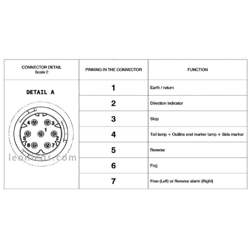LED-Rücklicht LC9 für Zugmaschine mit 7 Funktionen, erhältlich mit seitlichem Stecker AMP 1.5 7-polig, bietet einen Schutzgrad gegen Wasser und Staub von IP69K. Enthält LED-Positionslicht, LED-Bremslicht, LED-Blinklicht, LED-Rückfahrlicht, LED-Nebelscheinwerfer und untere Kennzeichenbeleuchtung nur im linken Rücklicht, geeignet für 24V. Dieses Modell ist das Original von Volvo und Renault.