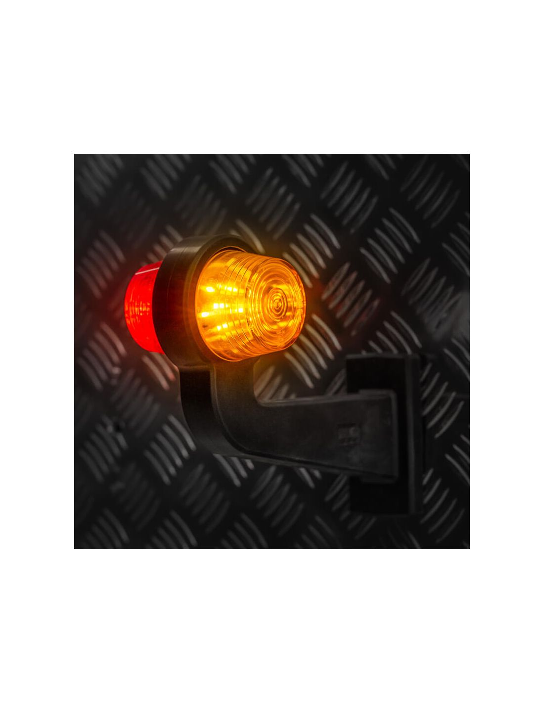 Die Gläser der 2 LED-Lichter dieses Horns sind eines in bernsteinfarben und eines in rot.