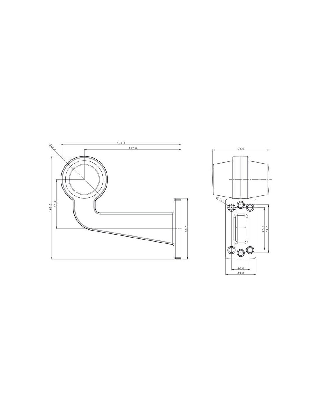Der LED Dekorationspilot FT-147 F Z/Z von Fristom in gelb-bernstein Tönen, mit langem Winkelarm und 0,3 m Kabel, ist ideal für Industrie- und Landwirtschaftsfahrzeuge. Kompatibel mit 12-36V, bietet er eine effiziente und langlebige dekorative Beschilderung.