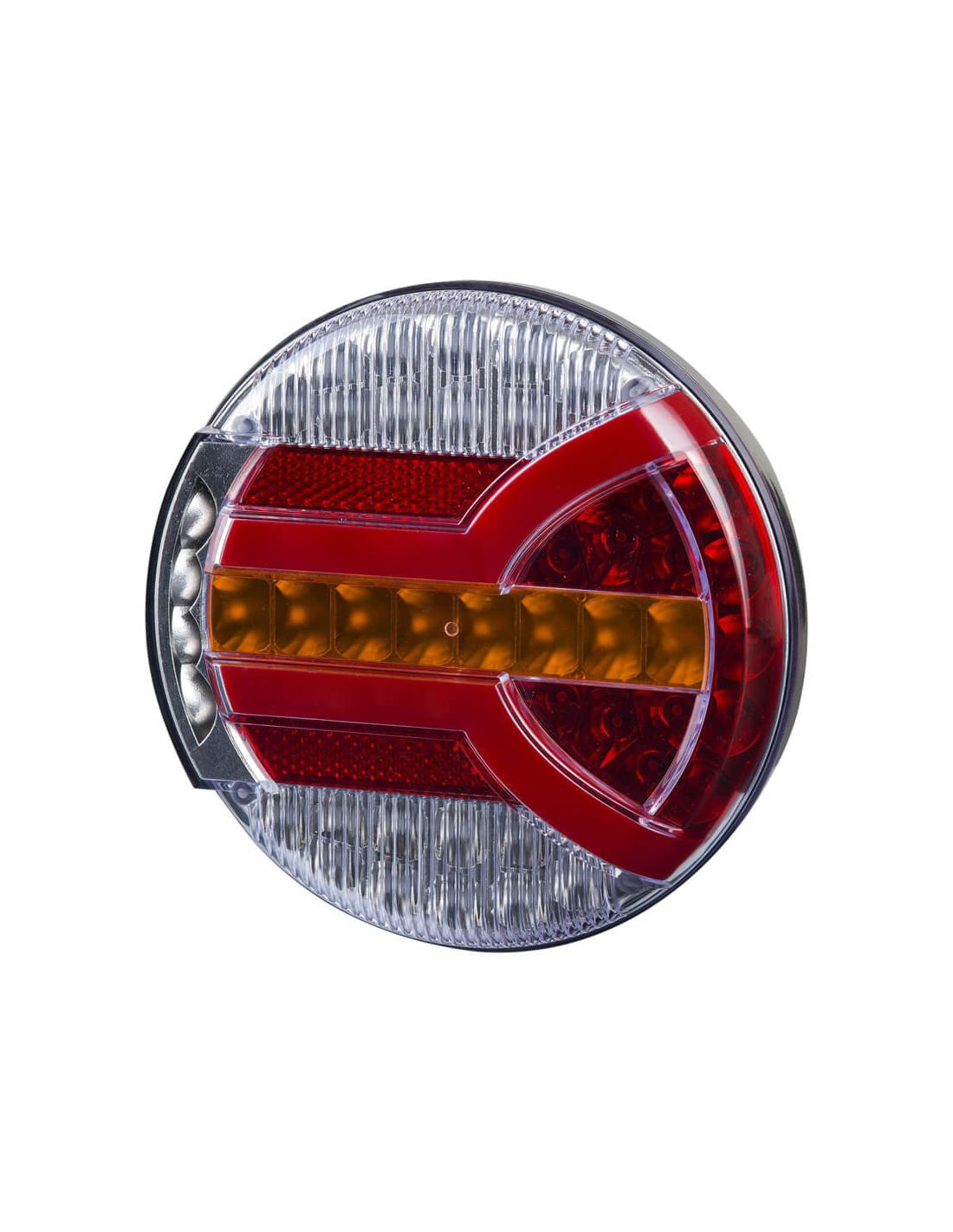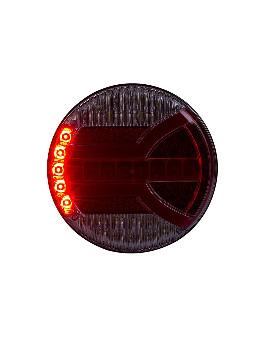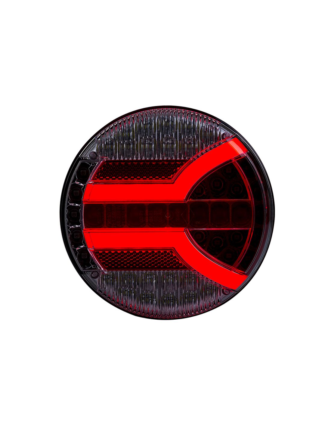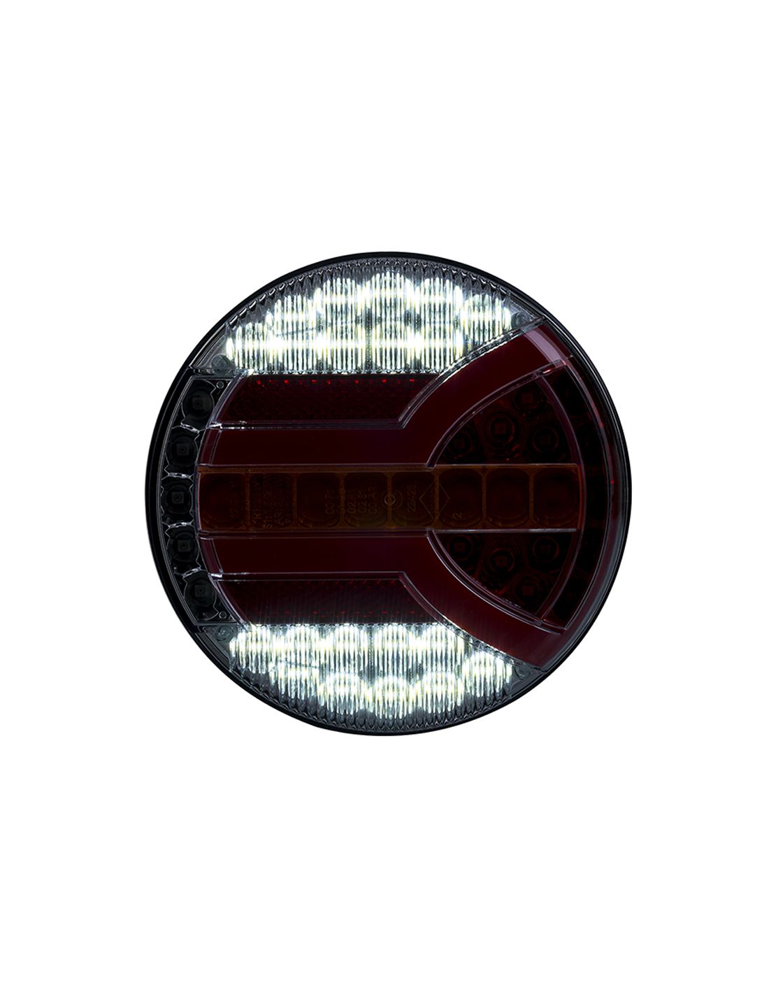 Rundrücklicht LED NAVIA mit 5 Funktionen: Position, Bremslicht, Blinklicht, Nebellicht und Rückfahrlicht, Zulassung F1, Sa, R1, S1 und AR, geeignet für 12/24V und modernes Design mit IP68.