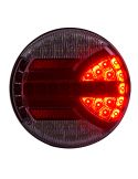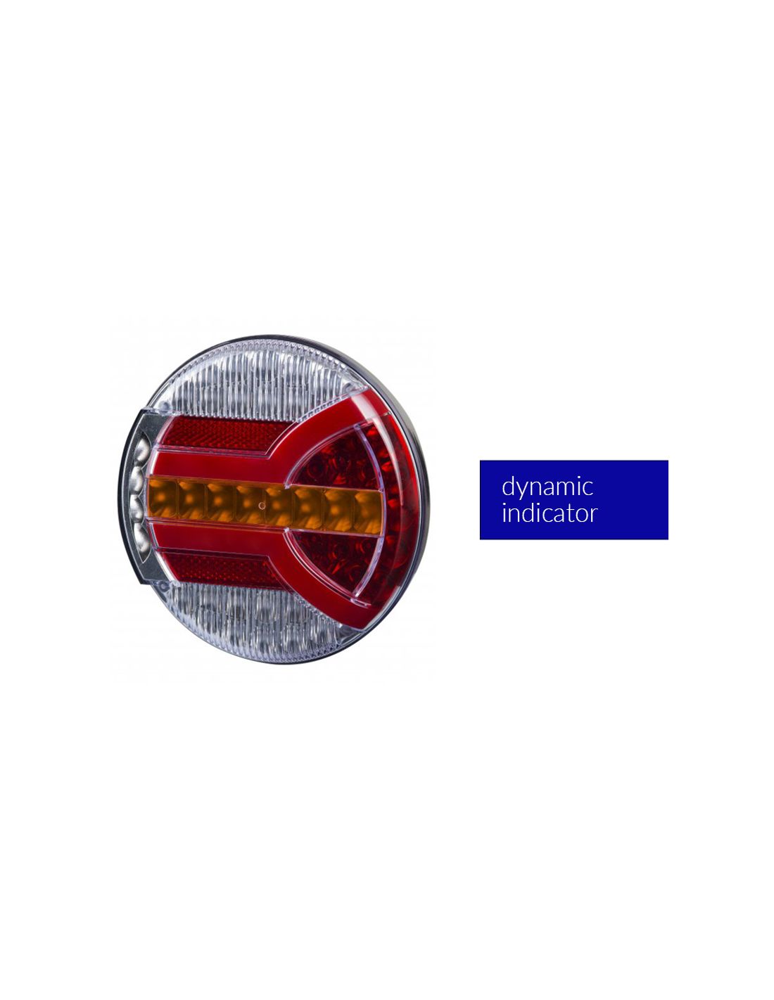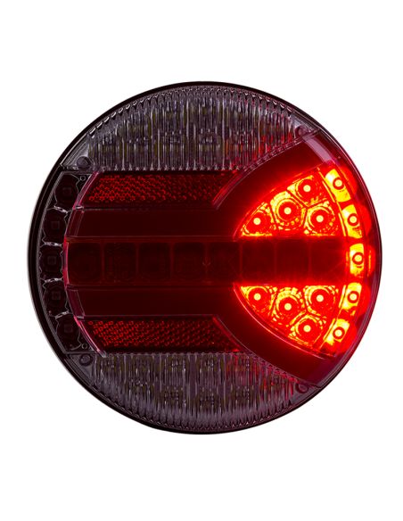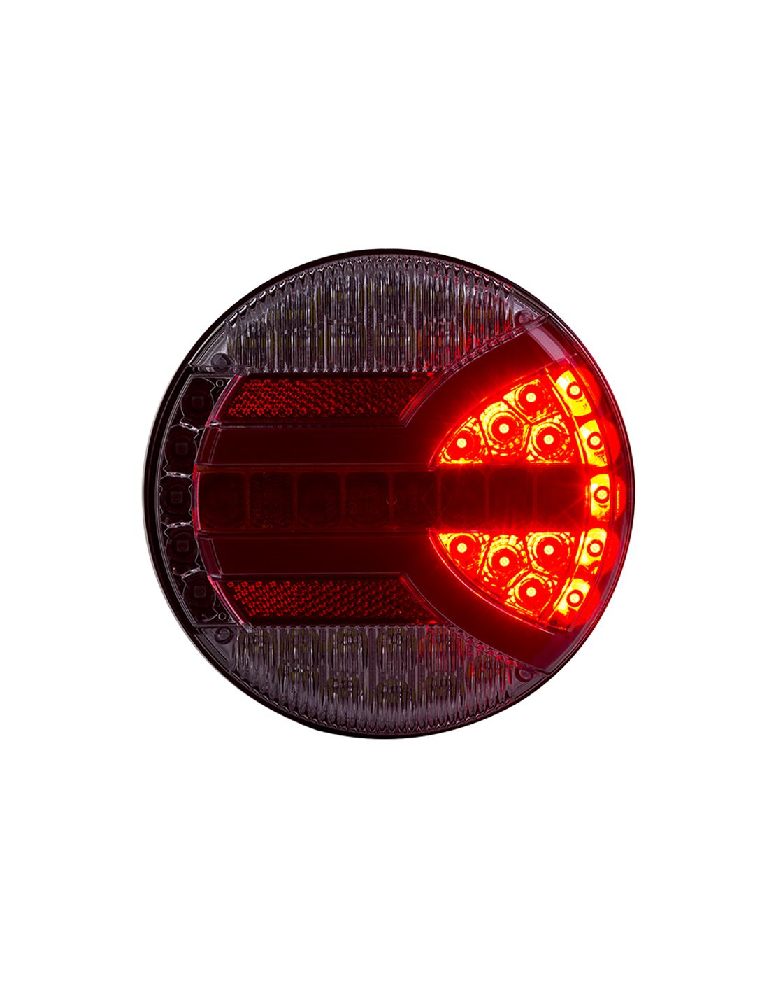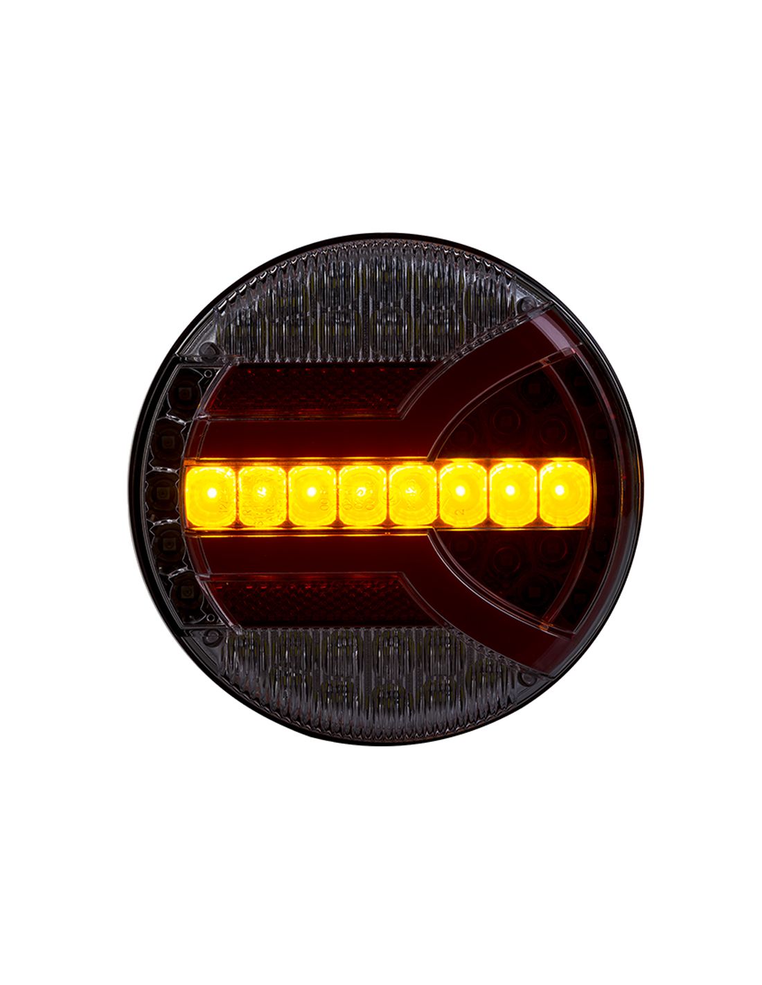 Rundrücklicht LED NAVIA mit 5 Funktionen: Position, Bremslicht, Blinklicht, Nebellicht und Rückfahrlicht, Zulassung F1, Sa, R1, S1 und AR, geeignet für 12/24V und modernes Design mit IP68.
