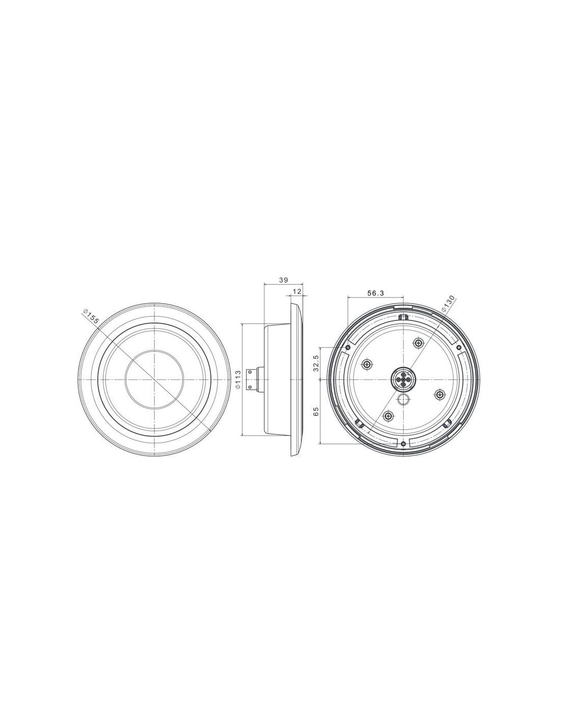 Abmessungen: Ø 15,5Cm | ↔ 3,9Cm für Einbau, 4,7Cm mit Oberflächenhalterung.