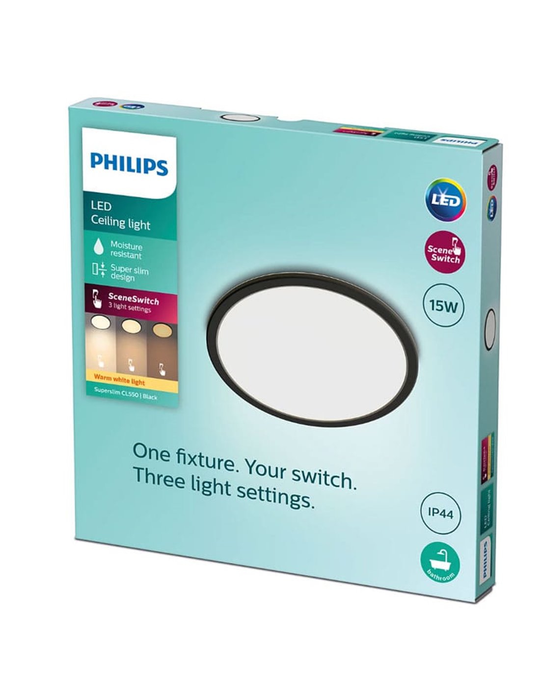 Die LED Deckenleuchte SUPERSLIM von Philips ist die perfekte Wahl für alle, die eine effiziente, elegante und anpassbare Beleuchtung suchen. Mit einem ultraflachen Profil und einer mattschwarzen Oberfläche passt diese LED-Leuchte perfekt in moderne, minimalistische und zeitgenössische Dekorationen. Ideal zur Beleuchtung von Bädern, Küchen und Innenräumen thanks to its moisture protection.
