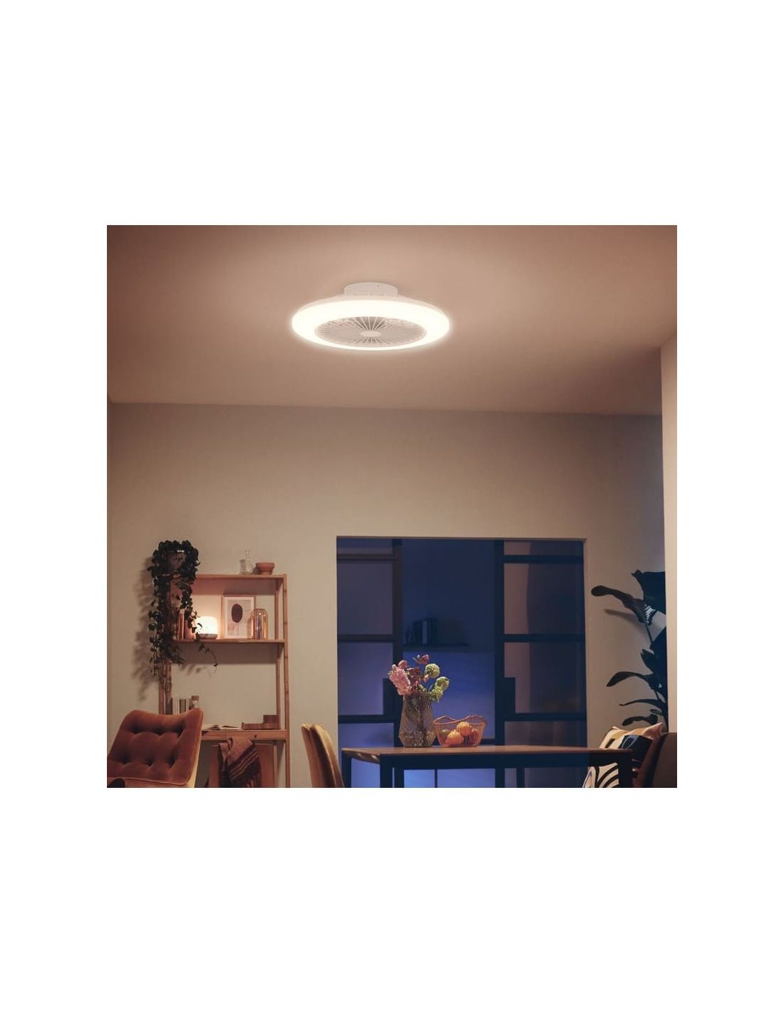 Entdecke den LED-Deckenventilator AMIGO von Philips, eine ideale Option, um jeden Raum stilvoll zu beleuchten und zu belüften. Dieses innovative Produkt kombiniert die Flexibilität eines einstellbaren Lichtfarbtemperaturbereichs von 2700K bis 6500K mit dem Komfort eines Deckenventilators, alles einfach über eine Fernbedienung steuerbar.
