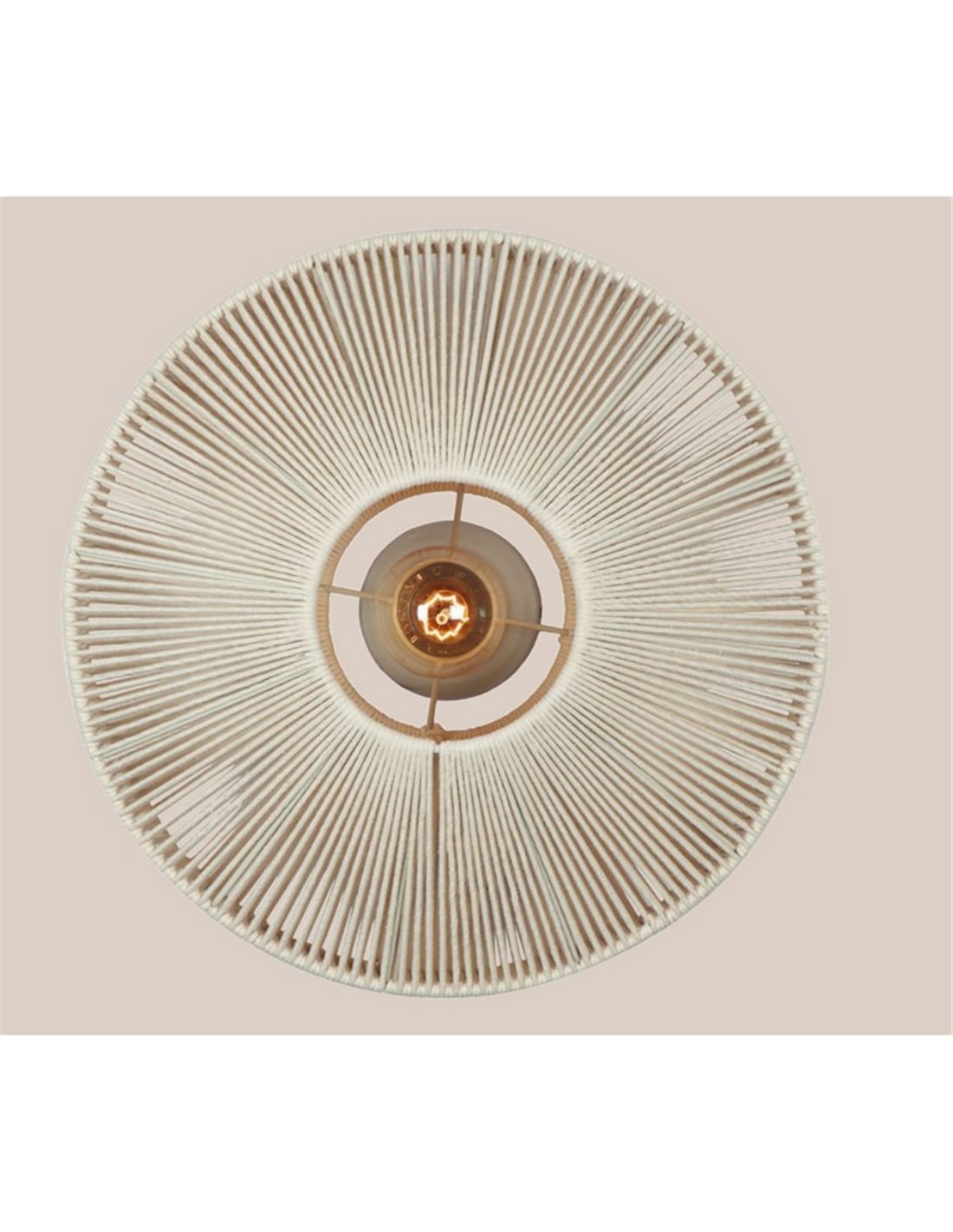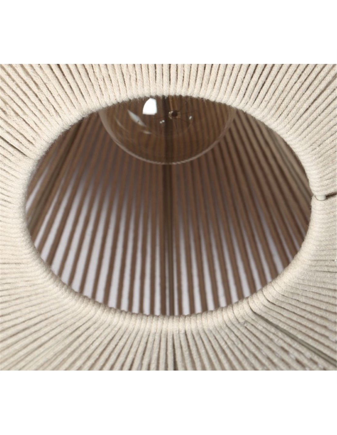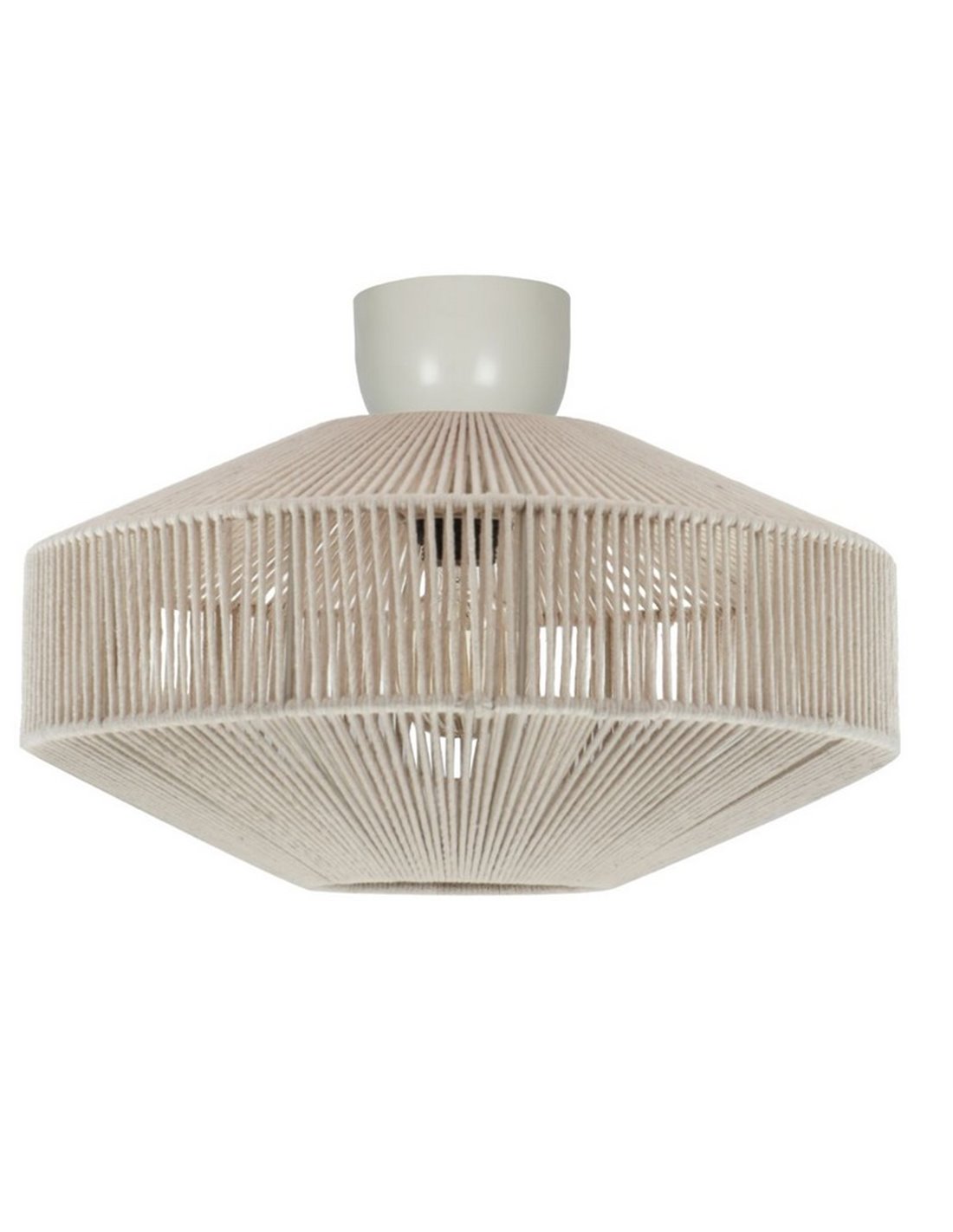 Der Deckenplafond SVEA kombiniert die Wärme des Boho-Stils mit einem natürlichen und eleganten Design. Sein Schirm aus geflochtenem Baumwollstoff in Beige reproduziert den Effekt von Rattan und erzeugt ein sanftes und umhüllendes Licht, das Wohlbefinden und Harmonie in die Umgebung bringt.