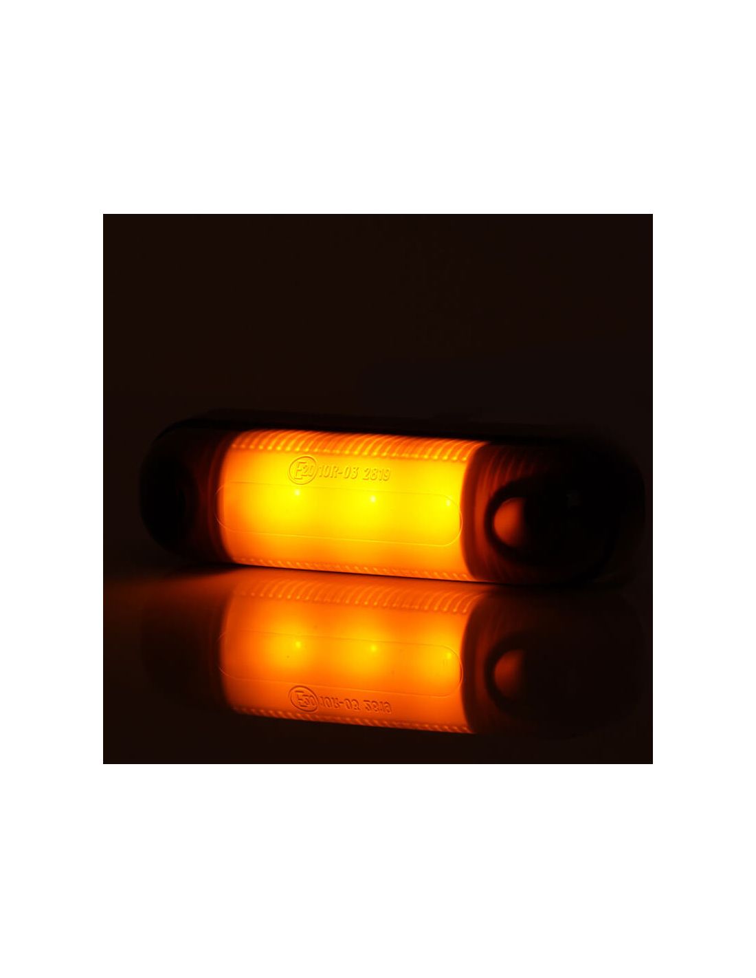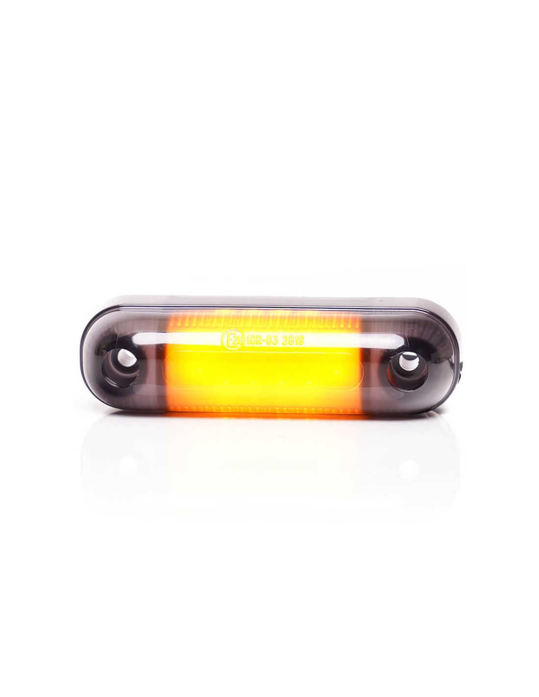 Entwickelt zur Installation in horizontaler oder vertikaler Position, ist diese Leuchte mit 12V- und 24V-Systemen kompatibel, was sie zu einer ausgezeichneten Wahl für eine breite Palette von Fahrzeugen macht. Erhältlich in drei zugelassenen Farben: Amber (SM1) seitlich, Weiß (AD) vorne und Rot (R1D) hinten, erfüllt sie die Normen für Verkehrssignalisierung und sorgt für sicheres und vertrauenswürdiges Fahren.